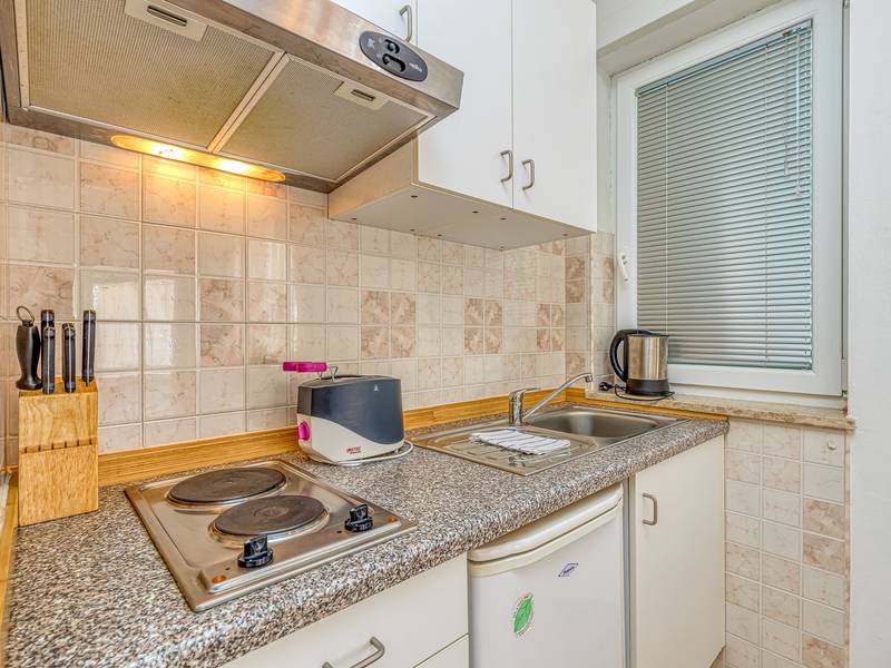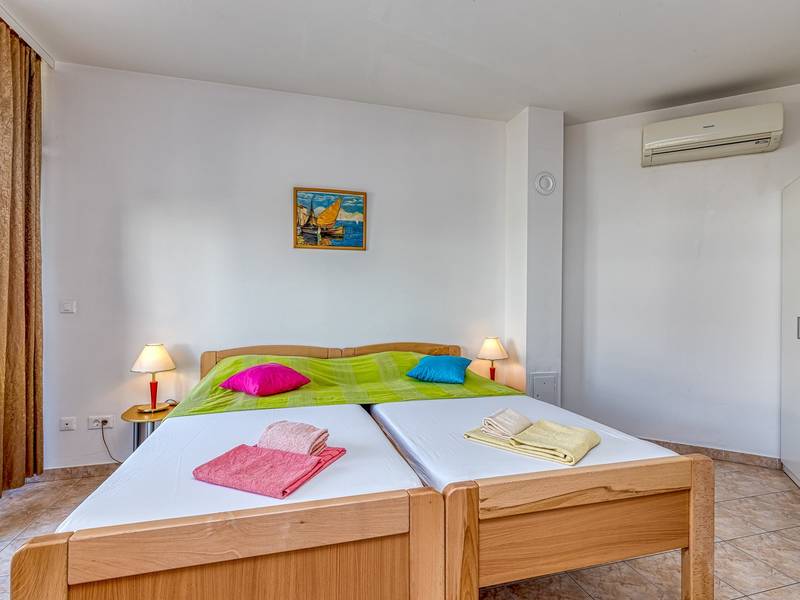 Das Appartementhaus Sunrise befindet sich in der Nähe des Strandes von Cuvi und besteht aus mehreren Appartements, die Platz für 2 bis 3 Personen bieten. Die Wohnungen befinden sich im Erdgeschoss, ersten und zweiten Stock. Alle Wohnungen haben einen Balkon oder eine Terrasse, ein Schlafzimmer, eine Küche mit einer Grundausstattung an Küchengeräten und ein Bad mit Dusche. Die Studioapartments haben kein separates Schlafzimmer, die Klimaanlage befindet sich im Wohnzimmer, das über ein Sofa für eine weitere Person verfügt. Wir empfehlen sie für Familien mit kleinen Kindern, da die Zusatzbetten nicht für Erwachsene geeignet sind. Das Wohnzimmer mit Esszimmer und Küche hat einen Ausgang auf einen kleinen Balkon/Terrasse mit Sitzgelegenheiten. Parkplätze befinden sich vor dem Haus, eine Voranmeldung ist nicht erforderlich. Haustiere sind nach vorheriger Anmeldung und gegen eine zusätzliche Gebühr erlaubt.