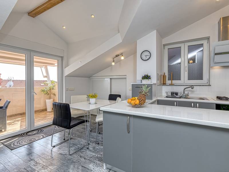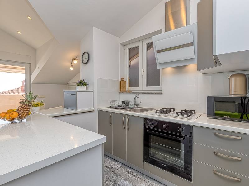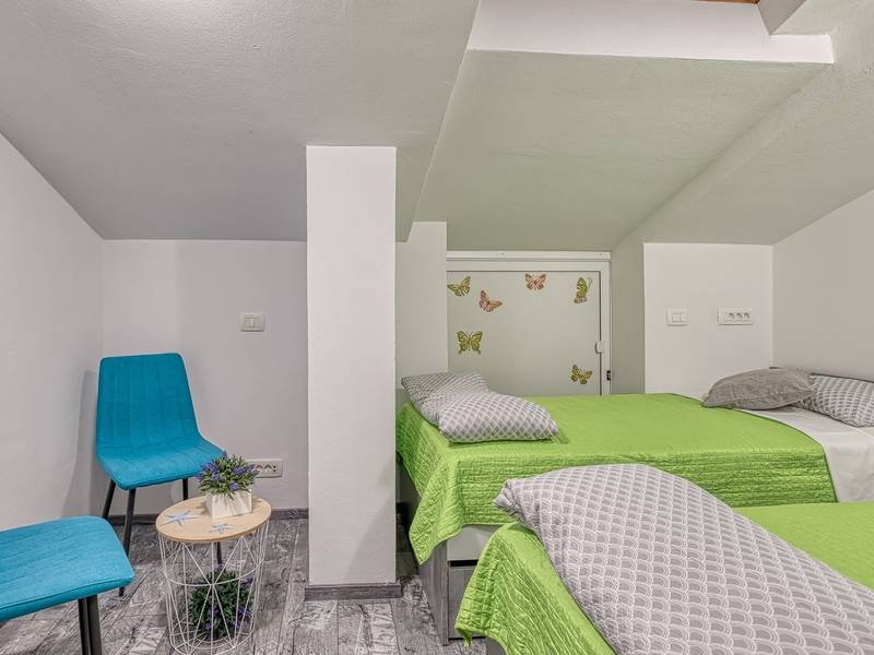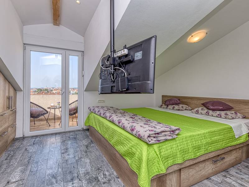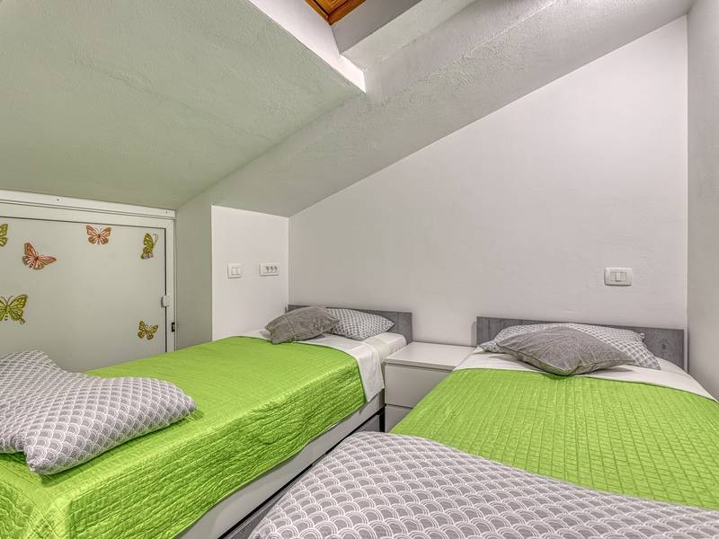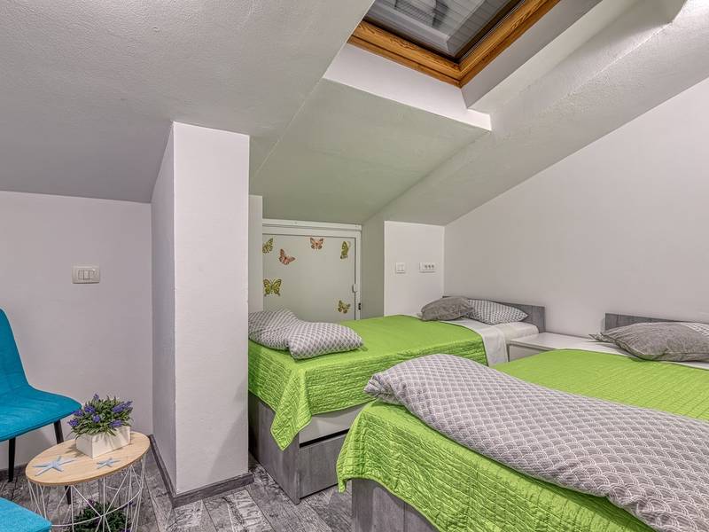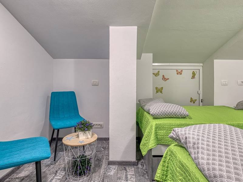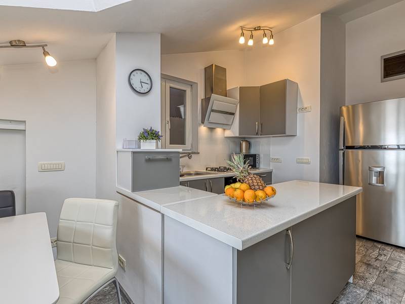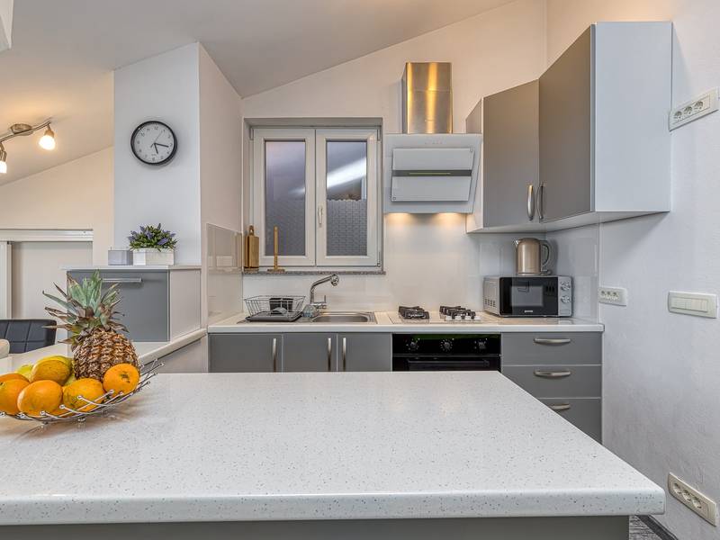 Das Apartment Enjoy L&C befindet sich im dritten Stock des Gebäudes. Es ist neu gebaut und modern und geschmackvoll eingerichtet. Die Wohnung besteht aus einem komfortablen Schlafzimmer mit einem Doppelbett, einem kleinen Schlafzimmer mit zwei getrennten Betten, einem Badezimmer mit Duschkabine, einem geräumigen Wohnzimmer mit einer voll ausgestatteten modernen Küche und einem Esszimmer. Im Wohnzimmer ist eine Klimaanlage vorhanden. Bettwäsche, Handtücher, Klimaanlage, Wi-Fi und Parkplatz sind im Mietpreis enthalten. Die Wohnung hat auch Zugang zu zwei privaten Balkonen mit Sitzmöbeln, für den Morgenkaffee oder Entspannung an warmen Sommerabenden können Sie einen Blick auf das Meer oder die Altstadt von Rovinj wählen. Genießen Sie diese schöne moderne Wohnung und genießen Sie die vielen Aktivitäten, kulturellen Sehenswürdigkeiten und schönen Strände, die Rovinj und Istrien zu bieten haben. Verbringen Sie hier einen unvergesslichen Urlaub mit Familie und Freunden. Außerdem steht den Gästen ein abschließbarer Raum für Fahrräder zur Verfügung.