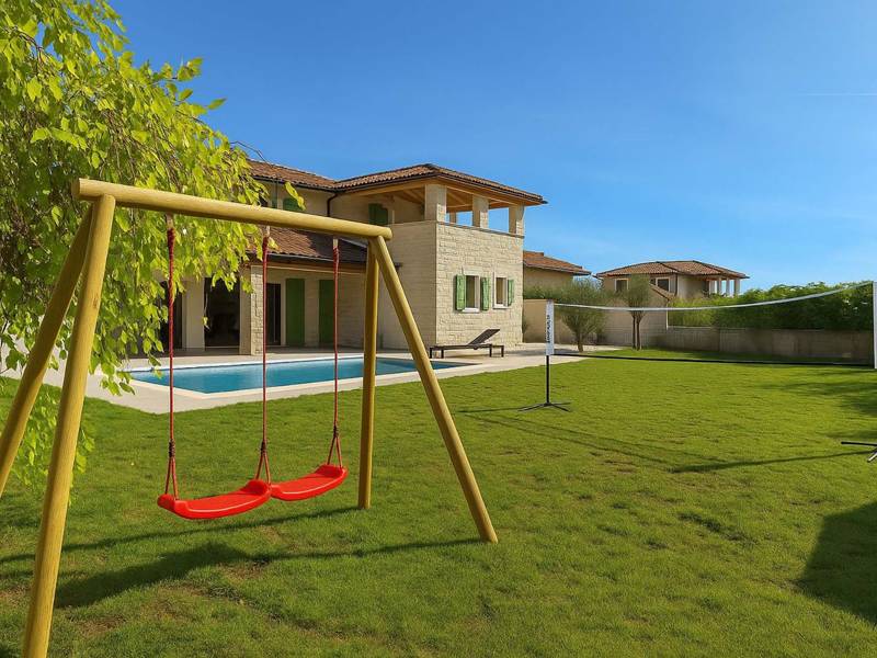 Im ruhigen Dorf Otočani in der Nähe von Žminj gelegen, bietet die neue Villa Lunistra auf 220 m2 modernen Komfort und absolute Privatsphäre für einen entspannten Urlaub in Istrien. Sie ist für bis zu acht Gäste ausgelegt und verfügt über ein geräumiges, offenes Wohnzimmer mit einer voll ausgestatteten Küche und einem Essbereich, der sich zu einer überdachten Terrasse und einem großen, eingezäunten Garten von 1.060 m2 erstreckt. Das Herzstück des Anwesens ist ein 34 m2 großer Pool, der von einer Sonnenterrasse mit bequemen Liegen umgeben ist, ideal für lange Sommertage. Dank der ausgezeichneten Lage können die Gäste die istrische Küste leicht erkunden - das malerische Rovinj ist nur 20 km entfernt, Pula 30 km und Poreč 40 km - und gleichzeitig die Ruhe und Privatsphäre dieser modernen Villa genießen. Wenn Sie eine jüngere Gruppe von Gästen sind, kontaktieren Sie bitte den Eigentümer im Voraus, da einige Eigentümer keine jüngeren Gruppen akzeptieren.