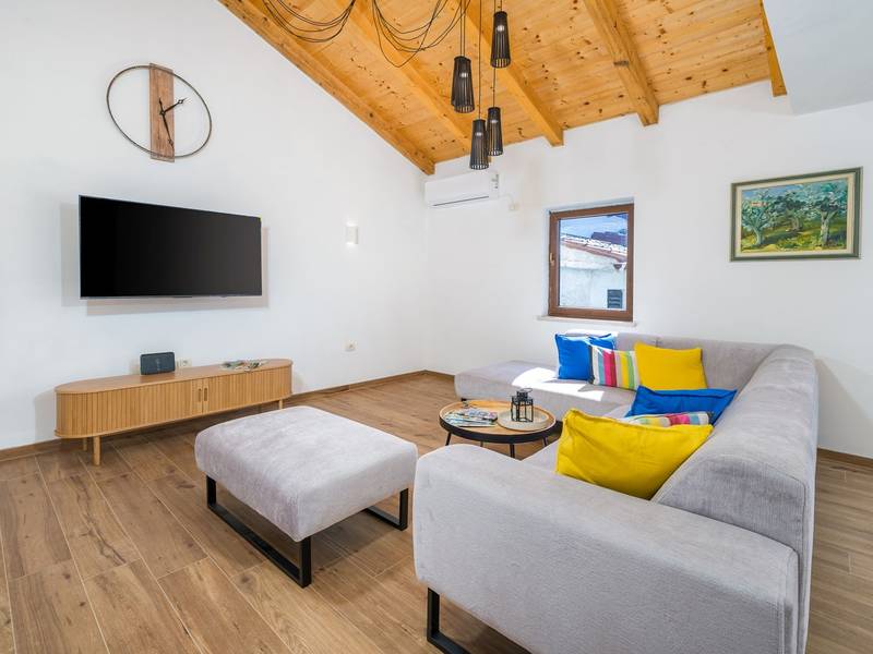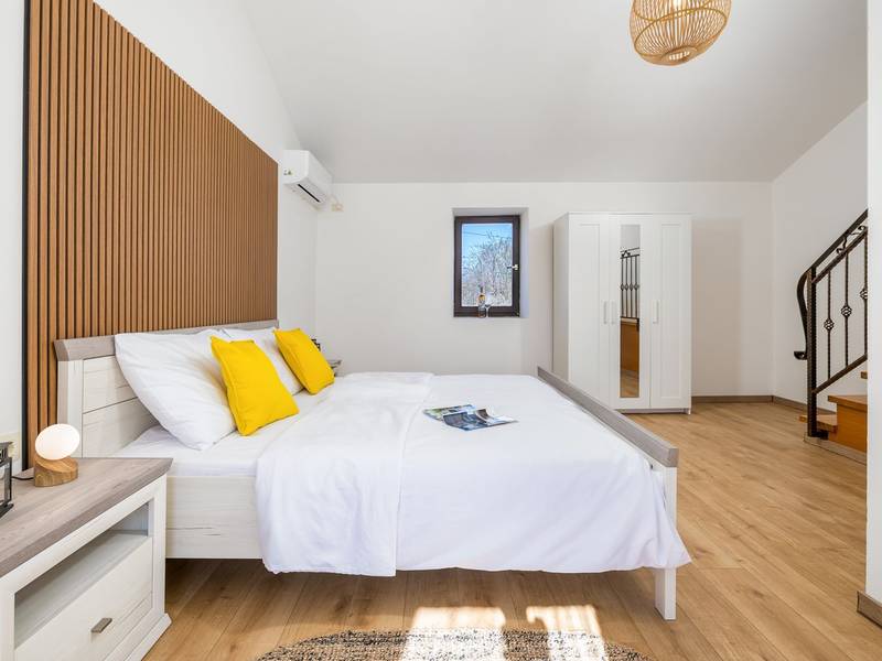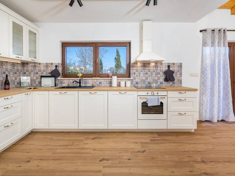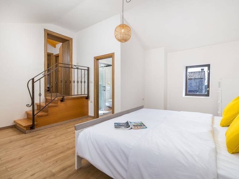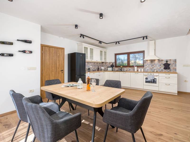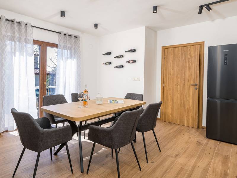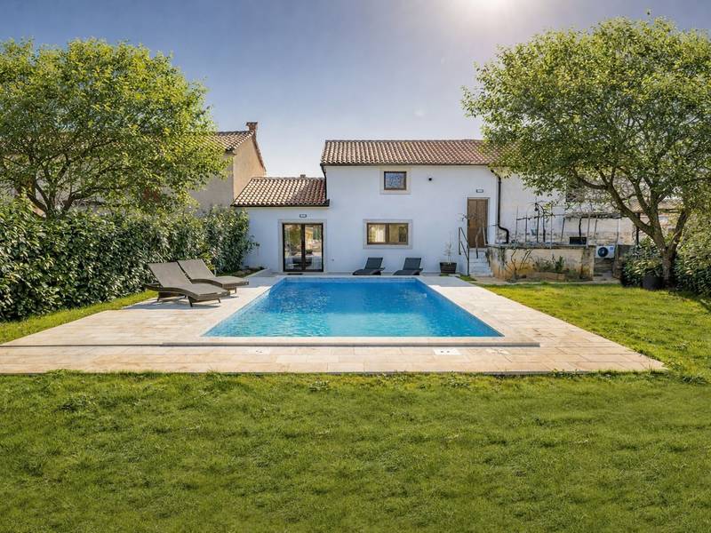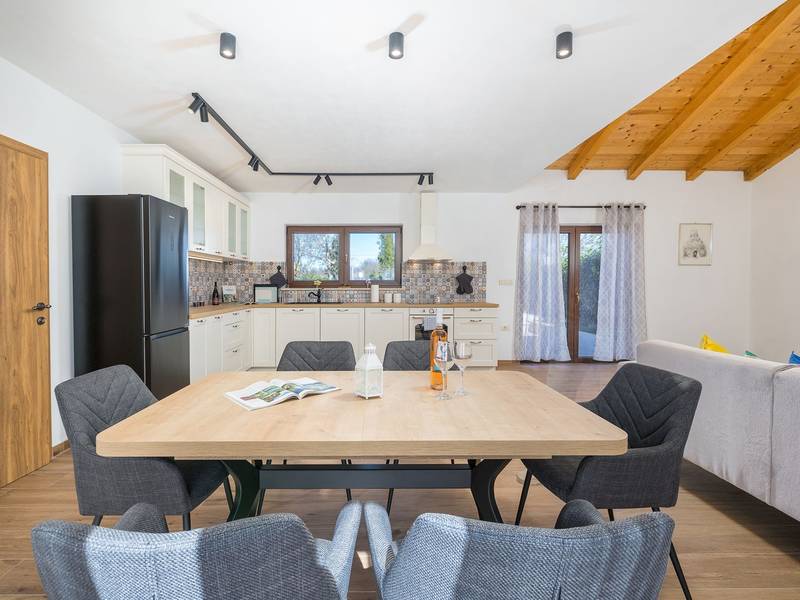 Die Villa Stock 66 ist ein wunderschön renoviertes Ferienhaus, ideal für Gäste, die Ruhe, Privatsphäre und einen erholsamen Aufenthalt inmitten der Natur suchen. Eingebettet in das charmante Dorf Štokovci, bietet diese Villa eine ruhige Umgebung und ist dennoch leicht zu erreichen. Das Anwesen verfügt über einen großzügigen 400 m2 großen, umzäunten Garten, ideal für Familien und das Leben im Freien. Das Herzstück ist ein privater 32 m2 großer Swimmingpool, der von Sonnenliegen und Sonnenschirmen umgeben ist - perfekt, um die mediterrane Sonne zu genießen. Den Gästen stehen außerdem ein gemütlicher Kamin, zwei Fahrräder zur Erkundung der Umgebung und ein privater Parkplatz zur Verfügung. Trotz der ruhigen Lage sind Supermärkte, Restaurants und Bars nur eine kurze Autofahrt entfernt (ca. 6 km), was die perfekte Balance zwischen Abgeschiedenheit und Komfort bietet. Die Villa bietet auf zwei Ebenen bequem Platz für bis zu 6 Gäste. Im Erdgeschoss befinden sich eine voll ausgestattete Küche, ein heller und einladender Wohnbereich und ein Essbereich, der ideal für gemeinsame Mahlzeiten ist. Im Obergeschoss finden Sie drei Schlafzimmer mit Doppelbetten. Ein Schlafzimmer verfügt über ein eigenes Bad, während sich die beiden anderen ein weiteres modernes Bad teilen. Ob Sie am Pool entspannen, die umliegende Landschaft erkunden oder Zeit mit Familie und Freunden verbringen möchten, die Villa Stock 66 bietet den perfekten Rahmen für einen unvergesslichen Urlaub in Istrien.