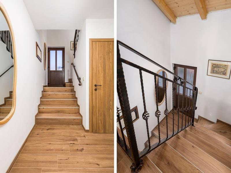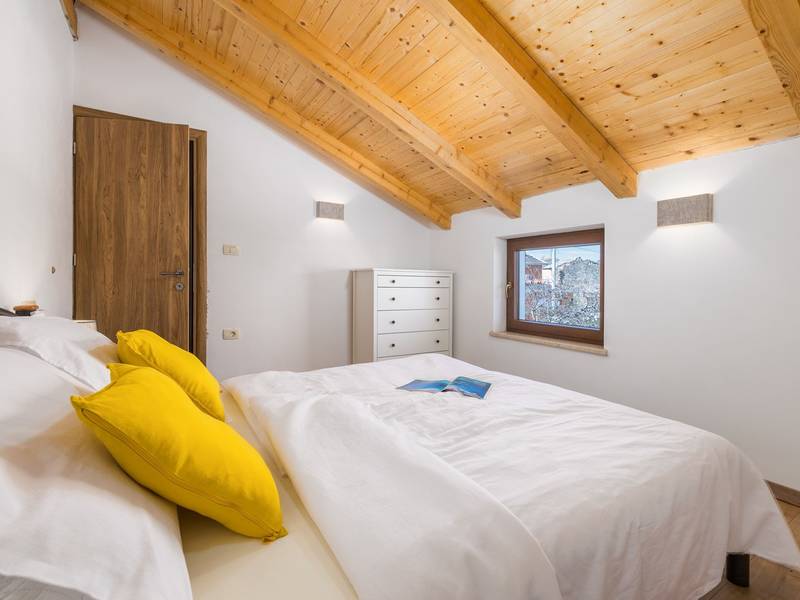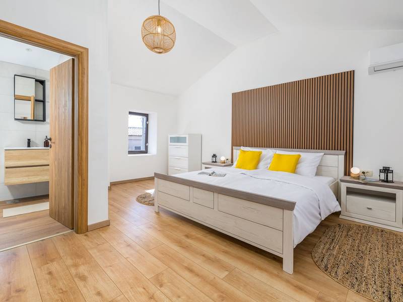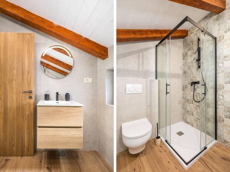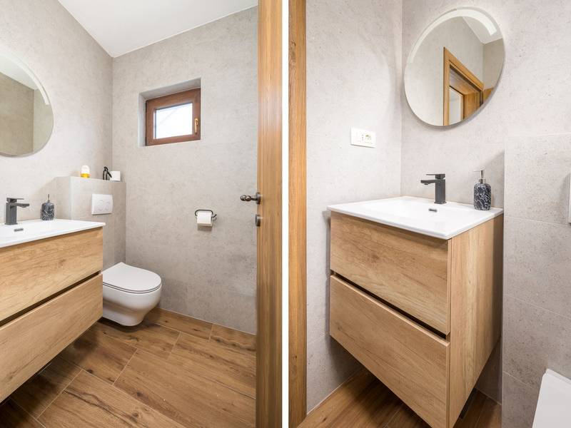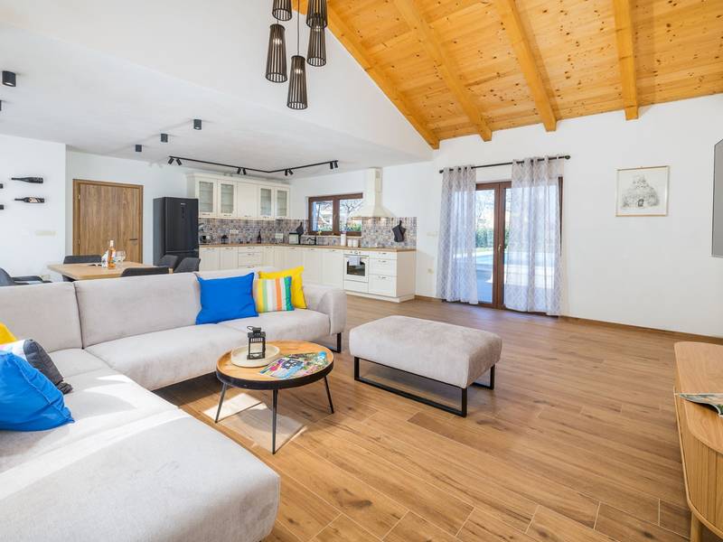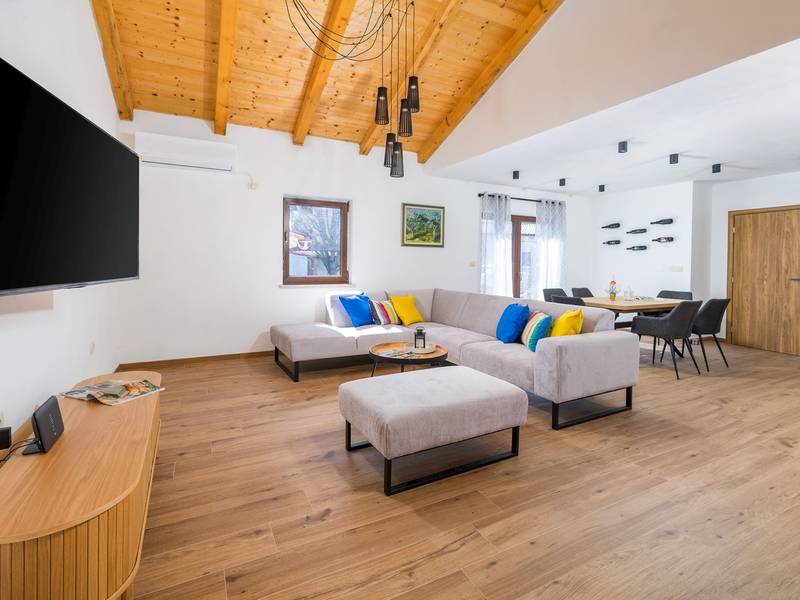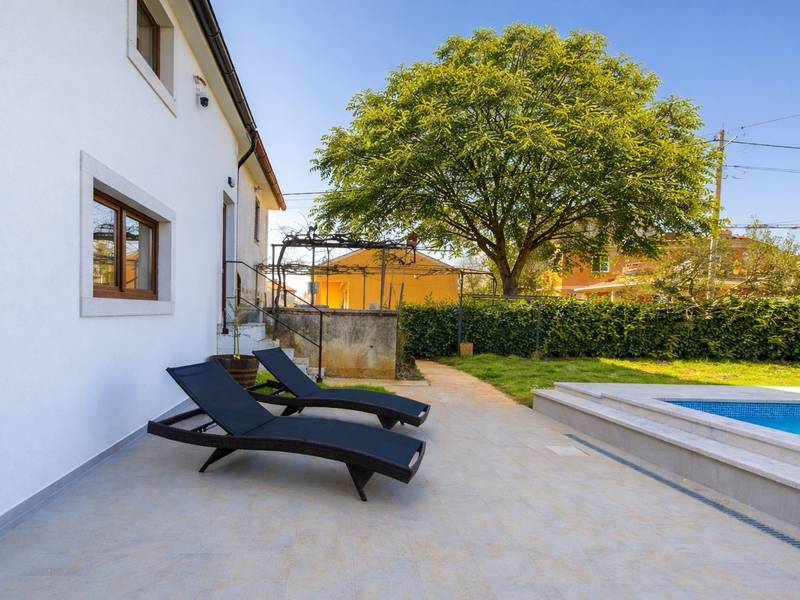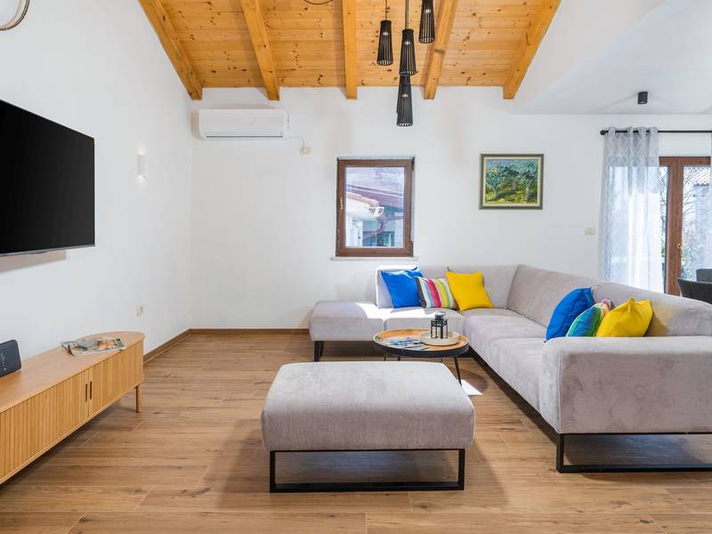 Die Villa Stock 66 ist ein wunderschön renoviertes Ferienhaus, ideal für Gäste, die Ruhe, Privatsphäre und einen erholsamen Aufenthalt inmitten der Natur suchen. Eingebettet in das charmante Dorf Štokovci, bietet diese Villa eine ruhige Umgebung und ist dennoch leicht zu erreichen. Das Anwesen verfügt über einen großzügigen 400 m2 großen, umzäunten Garten, ideal für Familien und das Leben im Freien. Das Herzstück ist ein privater 32 m2 großer Swimmingpool, der von Sonnenliegen und Sonnenschirmen umgeben ist - perfekt, um die mediterrane Sonne zu genießen. Den Gästen stehen außerdem ein gemütlicher Kamin, zwei Fahrräder zur Erkundung der Umgebung und ein privater Parkplatz zur Verfügung. Trotz der ruhigen Lage sind Supermärkte, Restaurants und Bars nur eine kurze Autofahrt entfernt (ca. 6 km), was die perfekte Balance zwischen Abgeschiedenheit und Komfort bietet. Die Villa bietet auf zwei Ebenen bequem Platz für bis zu 6 Gäste. Im Erdgeschoss befinden sich eine voll ausgestattete Küche, ein heller und einladender Wohnbereich und ein Essbereich, der ideal für gemeinsame Mahlzeiten ist. Im Obergeschoss finden Sie drei Schlafzimmer mit Doppelbetten. Ein Schlafzimmer verfügt über ein eigenes Bad, während sich die beiden anderen ein weiteres modernes Bad teilen. Ob Sie am Pool entspannen, die umliegende Landschaft erkunden oder Zeit mit Familie und Freunden verbringen möchten, die Villa Stock 66 bietet den perfekten Rahmen für einen unvergesslichen Urlaub in Istrien.