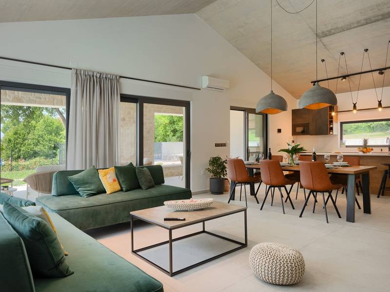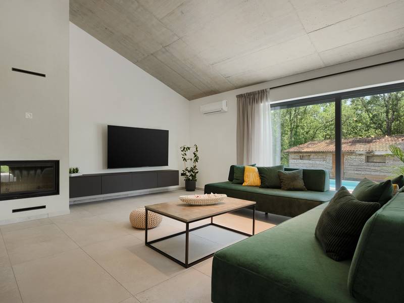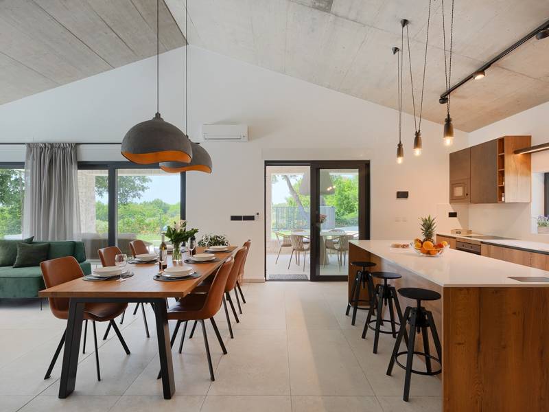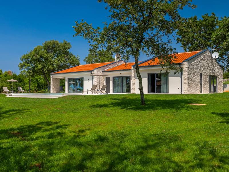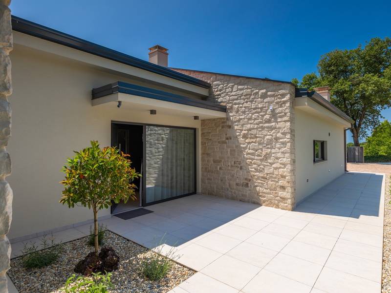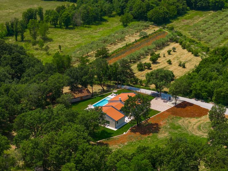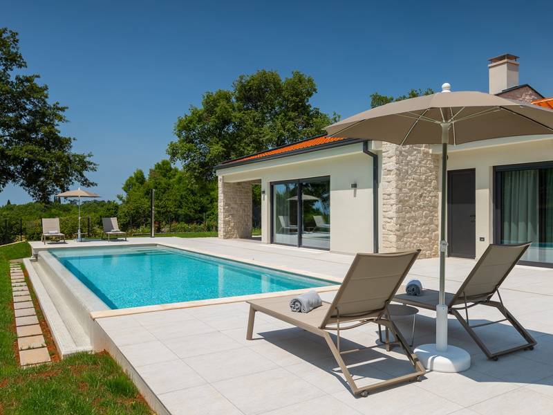 Diese charmante Villa mit Infinity-Pool bietet den perfekten Rückzugsort für einen erholsamen Urlaub im Herzen von Istrien. In dem ruhigen Dorf Majkusi gelegen, bietet sie absolute Privatsphäre und Ruhe inmitten unberührter Natur. Die Villa verfügt über zwei elegant eingerichtete Schlafzimmer, jedes mit eigenem Bad, die den Gästen maximalen Komfort bieten. Das wunderschön eingerichtete Interieur verbindet moderne Annehmlichkeiten mit authentischem istrischem Charme und schafft eine warme und einladende Atmosphäre. Der offene Wohn- und Essbereich erstreckt sich bis zu einer voll ausgestatteten Küche und einer geräumigen Terrasse, die ideal für Mahlzeiten im Freien ist. Auf dem 1600 m2 großen Gartengrundstück stehen den Gästen ein privater Swimmingpool, Sonnenliegen und ein Grillplatz zur Verfügung - ideal, um Zeit mit der Familie oder Freunden zu verbringen. Diese Villa bietet Platz für bis zu sechs Gäste und ist die ideale Wahl für alle, die Ruhe, Komfort und einen Hauch von Luxus inmitten der atemberaubenden Landschaft Zentralistriens suchen.