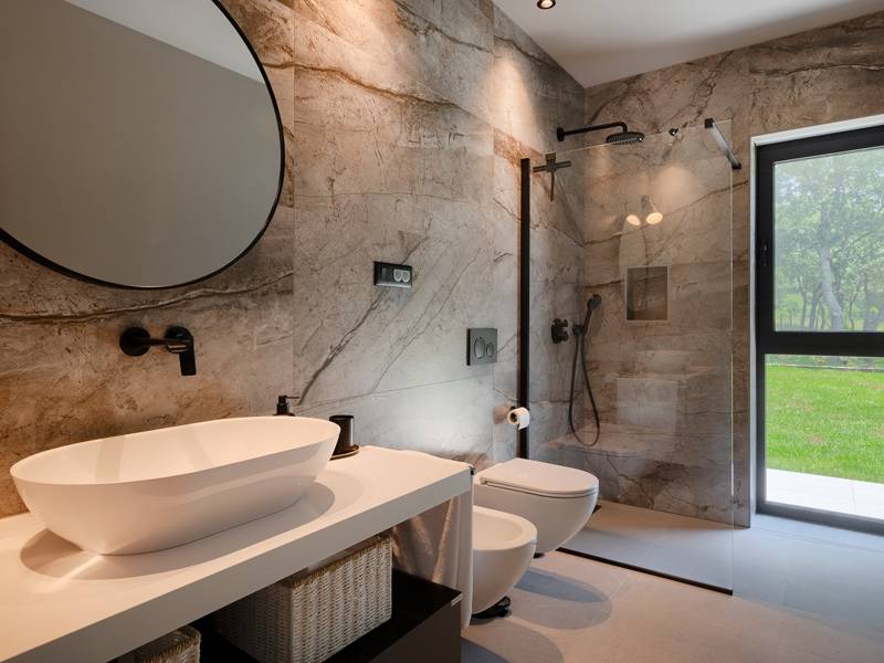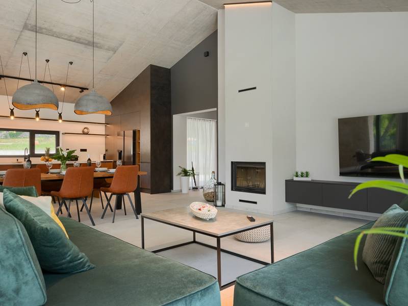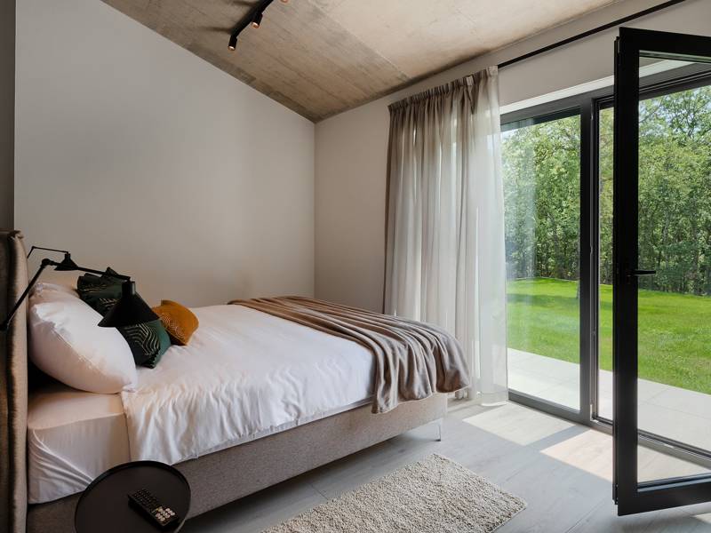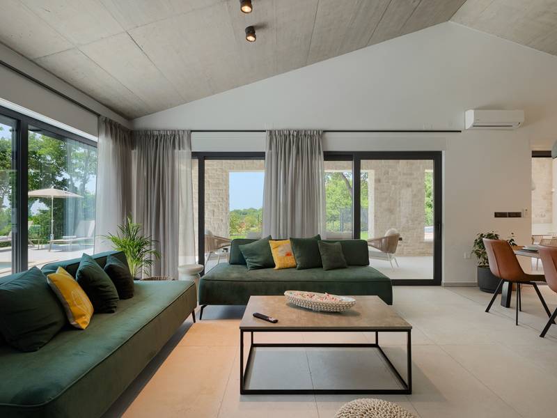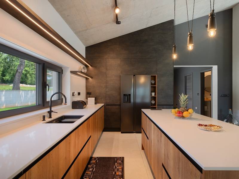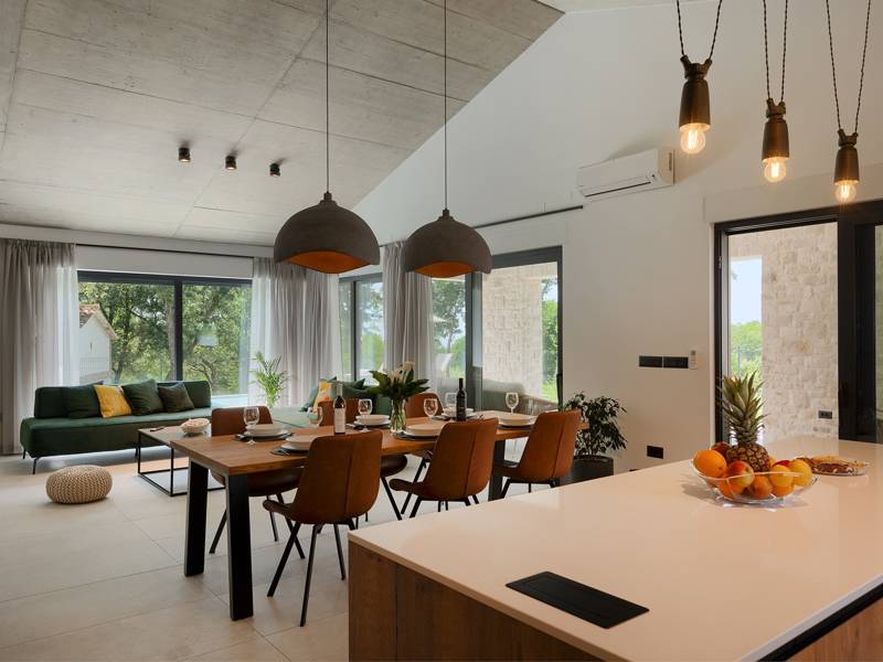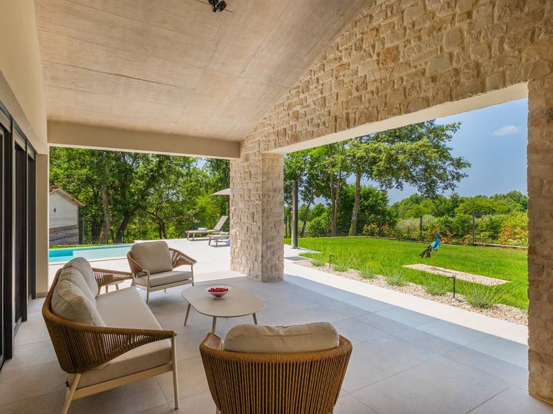Diese charmante Villa mit Infinity-Pool bietet den perfekten Rückzugsort für einen erholsamen Urlaub im Herzen von Istrien. In dem ruhigen Dorf Majkusi gelegen, bietet sie absolute Privatsphäre und Ruhe inmitten unberührter Natur. Die Villa verfügt über zwei elegant eingerichtete Schlafzimmer, jedes mit eigenem Bad, die den Gästen maximalen Komfort bieten. Das wunderschön eingerichtete Interieur verbindet moderne Annehmlichkeiten mit authentischem istrischem Charme und schafft eine warme und einladende Atmosphäre. Der offene Wohn- und Essbereich erstreckt sich bis zu einer voll ausgestatteten Küche und einer geräumigen Terrasse, die ideal für Mahlzeiten im Freien ist. Auf dem 1600 m2 großen Gartengrundstück stehen den Gästen ein privater Swimmingpool, Sonnenliegen und ein Grillplatz zur Verfügung - ideal, um Zeit mit der Familie oder Freunden zu verbringen. Diese Villa bietet Platz für bis zu sechs Gäste und ist die ideale Wahl für alle, die Ruhe, Komfort und einen Hauch von Luxus inmitten der atemberaubenden Landschaft Zentralistriens suchen.