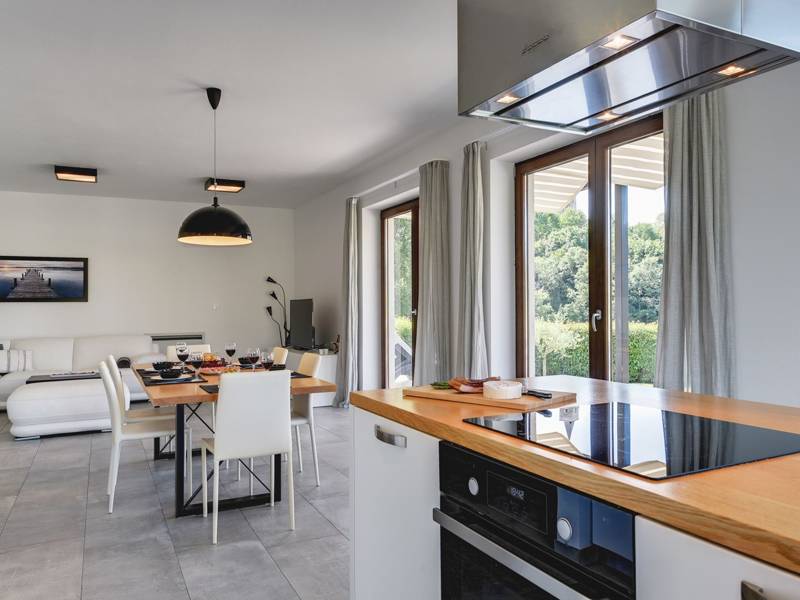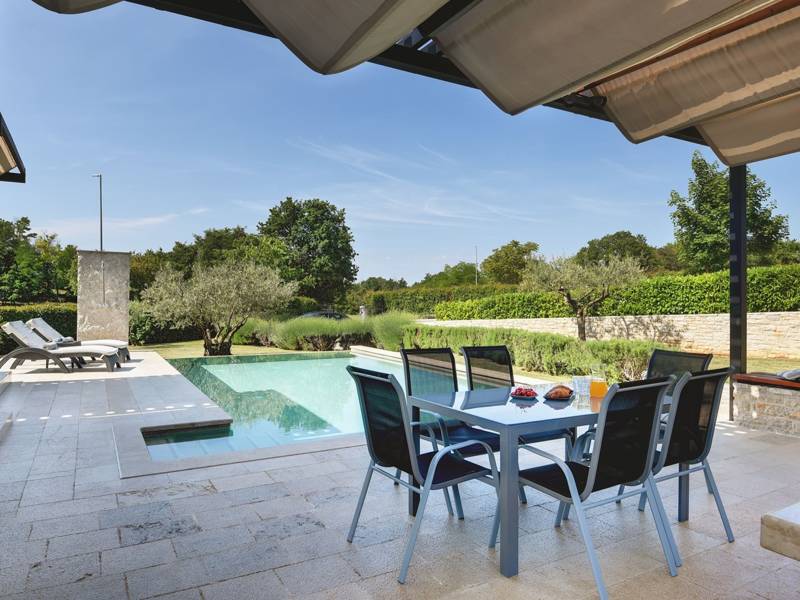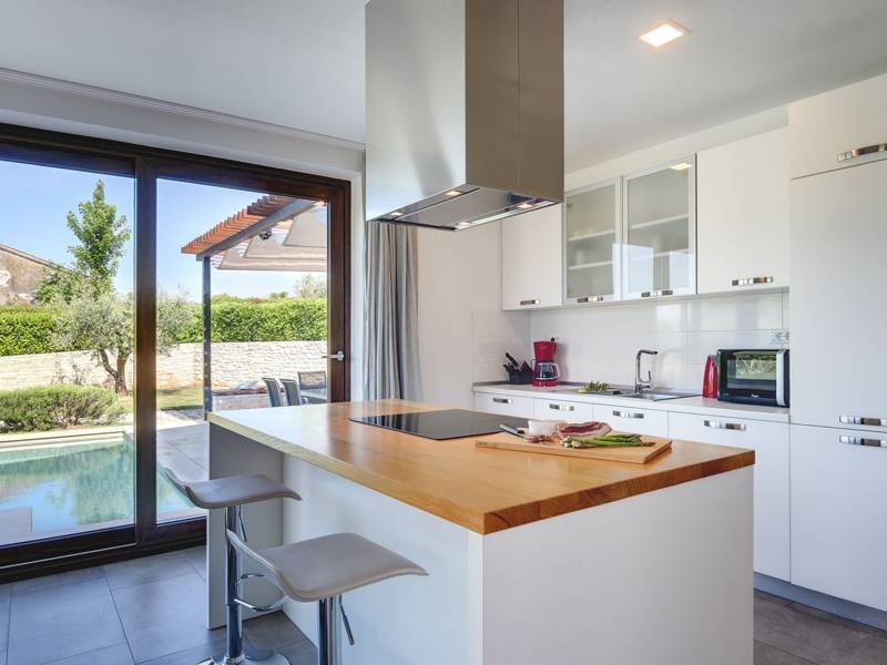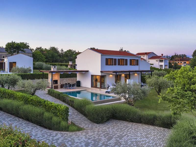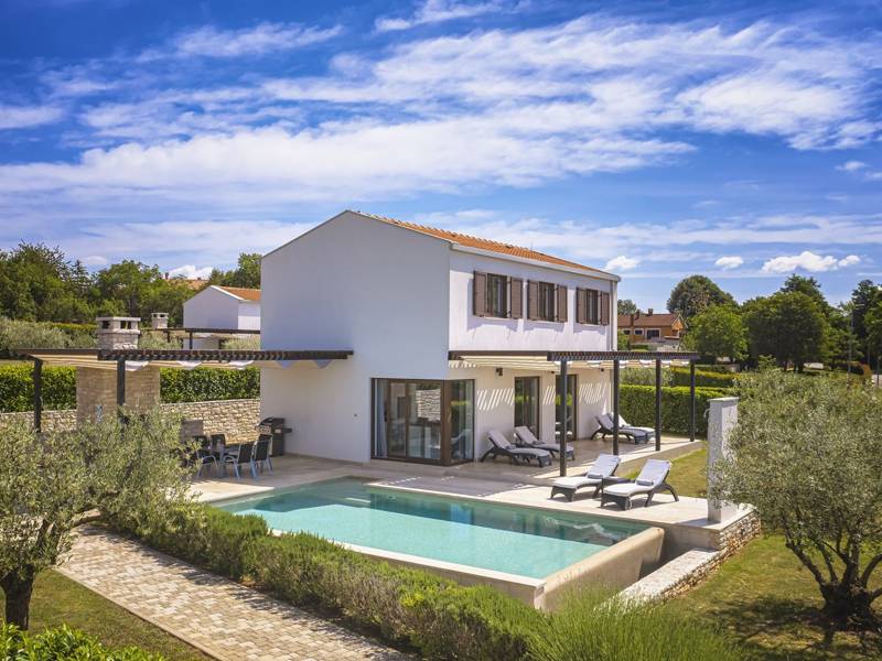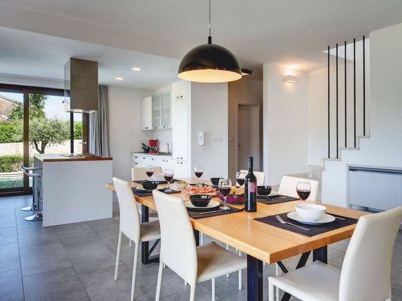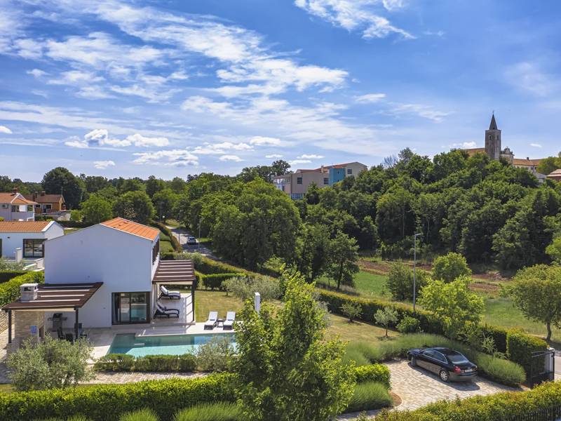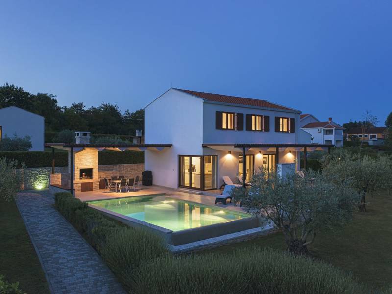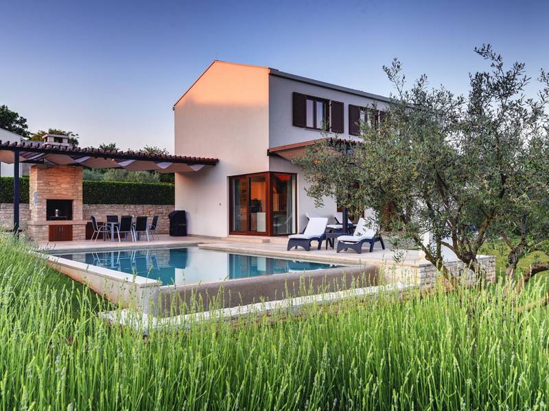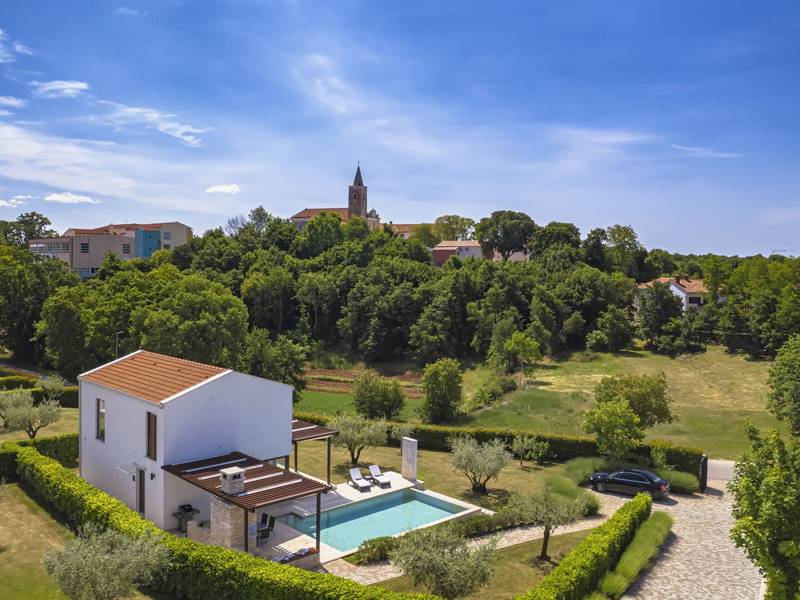 Entfliehen Sie in das Herz von Zentralistrien mit dieser schönen Villa, perfekt für Entspannung und Freizeit. Diese voll klimatisierte Villa erstreckt sich über 154 Quadratmeter auf zwei modern eingerichteten Ebenen. Das Erdgeschoss empfängt Sie mit einem offenen Wohnbereich, der ein gemütliches Wohnzimmer, einen Essbereich und eine voll ausgestattete Küche umfasst. Vom Wohnzimmer aus gelangen Sie auf die Terrasse, die direkt zu einem großen 50 m² großen Swimmingpool führt, der von einem wunderschön gepflegten 1650 m² großen Garten umgeben ist. Im Obergeschoss der Villa befinden sich drei elegant gestaltete Schlafzimmer, die jeweils mit einem Doppelbett ausgestattet sind. Das Hauptschlafzimmer verfügt über ein eigenes Bad, während sich die beiden anderen Schlafzimmer ein weiteres, gut ausgestattetes Bad teilen. Zu den weiteren Annehmlichkeiten gehören ein Safe, ein Kinderhochstuhl, ein Babybett und kostenloses Wi-Fi. Im Außenbereich bietet die Villa eine Vielzahl von Einrichtungen, die Ihren Aufenthalt bereichern, darunter eine Außendusche, eine geräumige Pergola, bequeme Gartenmöbel und ein Grillplatz für gemütliche Mahlzeiten im Freien. Das Anwesen befindet sich in einer ruhigen Lage, in der Nähe von lokalen Annehmlichkeiten; ein Geschäft ist nur 600 Meter entfernt, und ein Restaurant befindet sich in 1 km Entfernung. Für Outdoor-Fans sind Wanderwege und ein Radweg nur einen Kilometer von der Haustür entfernt. Diese Villa ist die ideale Wahl für Familien oder Gruppen, die einen ruhigen Rückzugsort mit dem Luxus von Privatsphäre und Komfort in der malerischen Umgebung von Istrien suchen.