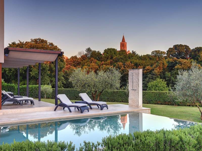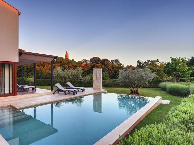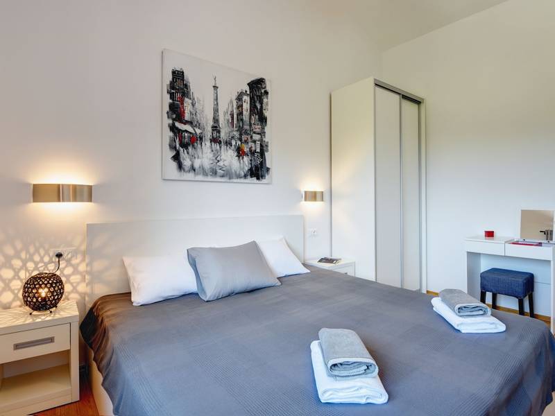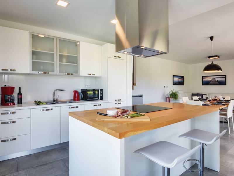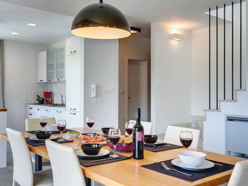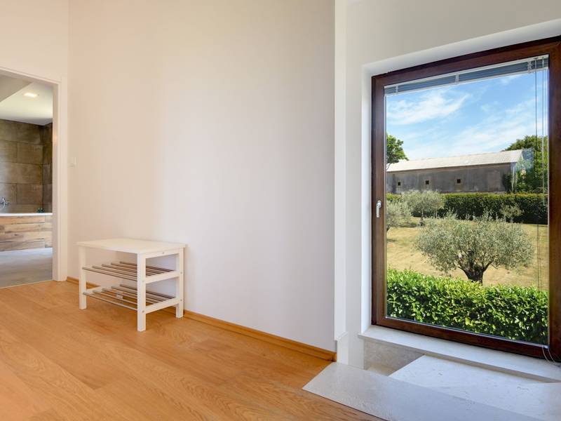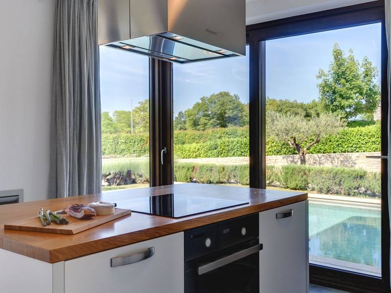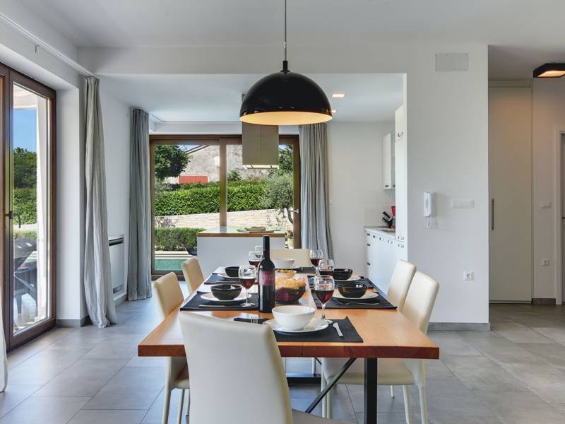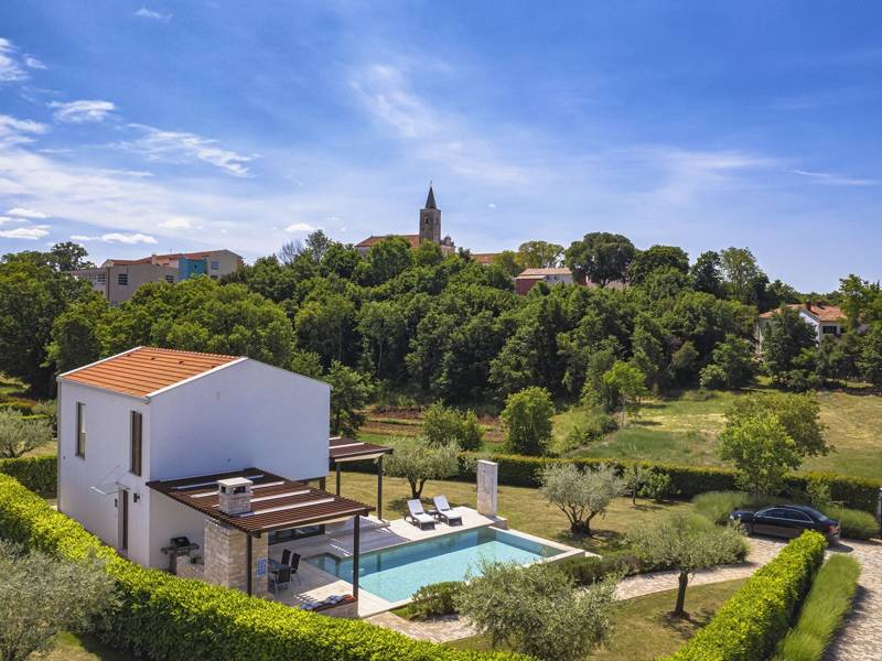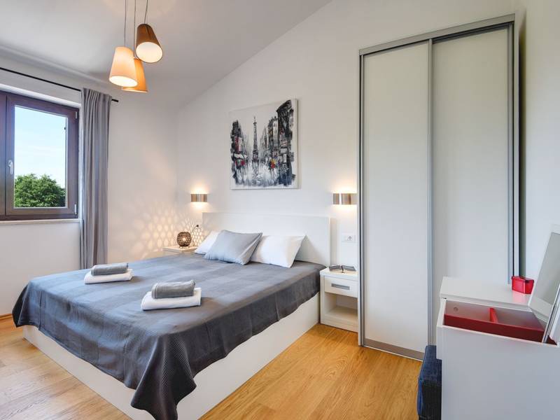 Entfliehen Sie in das Herz von Zentralistrien mit dieser schönen Villa, perfekt für Entspannung und Freizeit. Diese voll klimatisierte Villa erstreckt sich über 154 Quadratmeter auf zwei modern eingerichteten Ebenen. Das Erdgeschoss empfängt Sie mit einem offenen Wohnbereich, der ein gemütliches Wohnzimmer, einen Essbereich und eine voll ausgestattete Küche umfasst. Vom Wohnzimmer aus gelangen Sie auf die Terrasse, die direkt zu einem großen 50 m² großen Swimmingpool führt, der von einem wunderschön gepflegten 1650 m² großen Garten umgeben ist. Im Obergeschoss der Villa befinden sich drei elegant gestaltete Schlafzimmer, die jeweils mit einem Doppelbett ausgestattet sind. Das Hauptschlafzimmer verfügt über ein eigenes Bad, während sich die beiden anderen Schlafzimmer ein weiteres, gut ausgestattetes Bad teilen. Zu den weiteren Annehmlichkeiten gehören ein Safe, ein Kinderhochstuhl, ein Babybett und kostenloses Wi-Fi. Im Außenbereich bietet die Villa eine Vielzahl von Einrichtungen, die Ihren Aufenthalt bereichern, darunter eine Außendusche, eine geräumige Pergola, bequeme Gartenmöbel und ein Grillplatz für gemütliche Mahlzeiten im Freien. Das Anwesen befindet sich in einer ruhigen Lage, in der Nähe von lokalen Annehmlichkeiten; ein Geschäft ist nur 600 Meter entfernt, und ein Restaurant befindet sich in 1 km Entfernung. Für Outdoor-Fans sind Wanderwege und ein Radweg nur einen Kilometer von der Haustür entfernt. Diese Villa ist die ideale Wahl für Familien oder Gruppen, die einen ruhigen Rückzugsort mit dem Luxus von Privatsphäre und Komfort in der malerischen Umgebung von Istrien suchen.