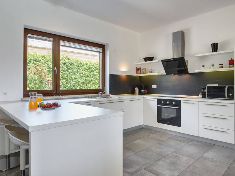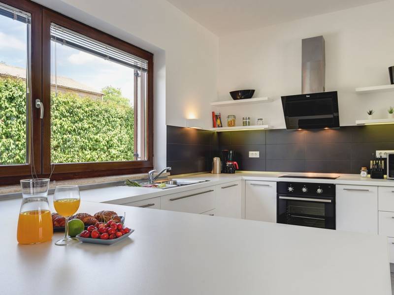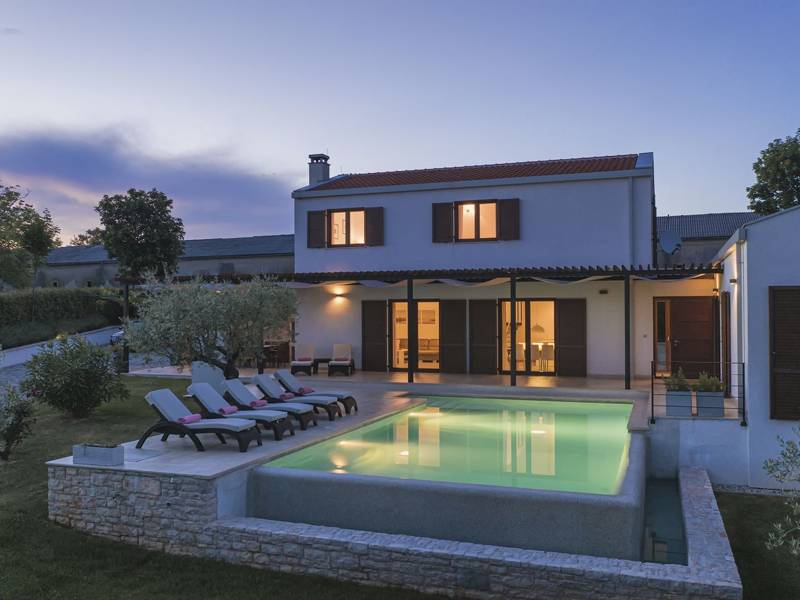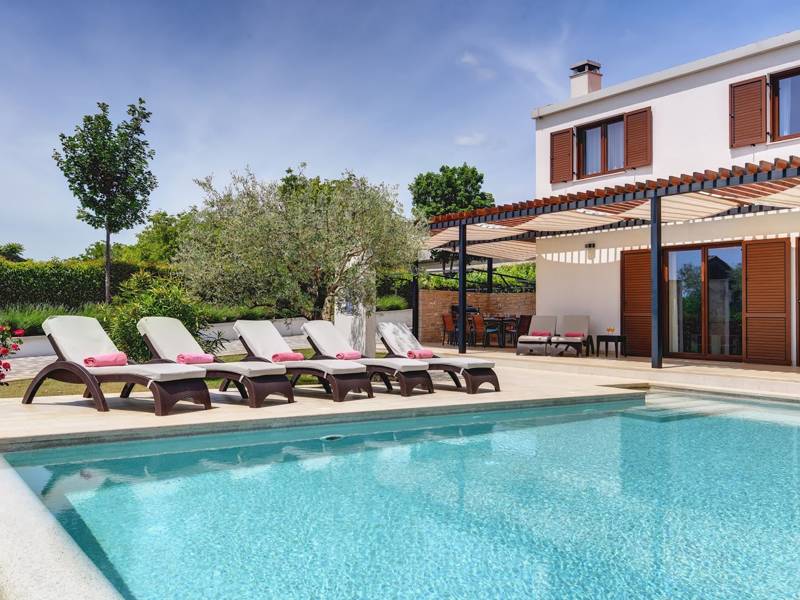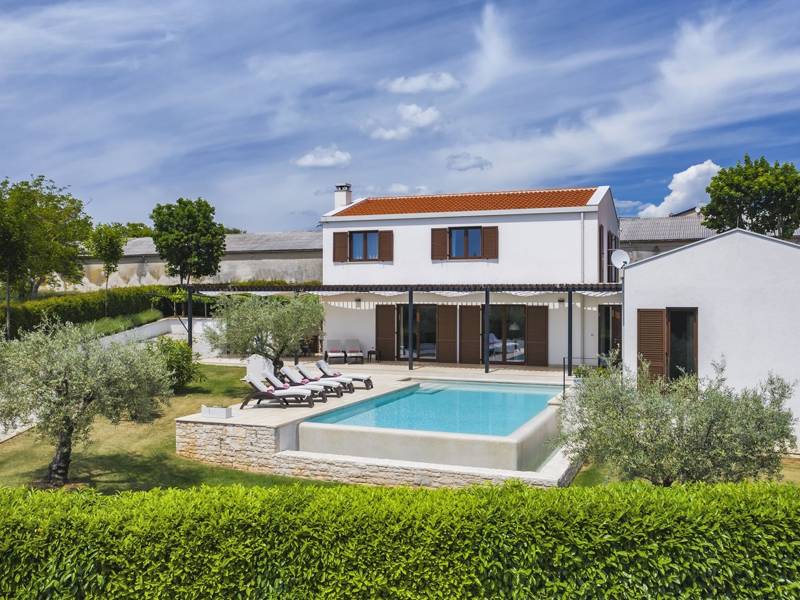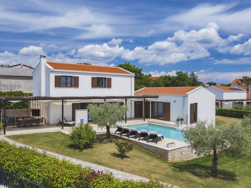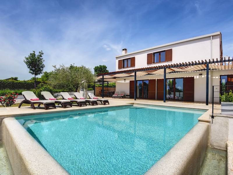 Entdecken Sie den Charme Mittelistriens bei einem Aufenthalt in der modernen Villa Luna Rossa, einem wunderschönen Anwesen, das Raffinesse und Komfort miteinander verbindet. Diese Villa verfügt über 220 Quadratmeter auf zwei Ebenen, umgeben von einem 1270 Quadratmeter großen, gepflegten Garten und einem 50 Quadratmeter großen Swimmingpool. Eine Außendusche, eine überdachte Terrasse mit Gartenmöbeln, ein Grillplatz und ein überdachter Parkplatz für bis zu drei Autos sorgen für zusätzliche Entspannung. Im Erdgeschoss erwartet Sie ein offener Wohn- und Essbereich, der direkt auf die Terrasse und den Pool führt. Die voll ausgestattete Küche sorgt für ein reibungsloses Kocherlebnis. Außerdem befindet sich auf dieser Ebene ein gemütliches Schlafzimmer mit einem Doppelbett und einem eigenen Bad. Von diesem Schlafzimmer aus hat man direkten Zugang zur Terrasse, wo man frühmorgens schwimmen oder spätabends ein Bad nehmen kann. Im ersten Stock finden Sie eine einzigartige Aufteilung mit einem begehbaren Schlafzimmer mit Doppelbett und eigenem Bad, das in ein weiteres Schlafzimmer mit einem ausziehbaren Bett für zwei Personen führt. Auf dieser Etage befindet sich ein weiteres Schlafzimmer mit zwei Einzelbetten und eigenem Bad, so dass die Privatsphäre und der Komfort für alle Gäste gewährleistet sind. Die Villa Luna Rossa ist mit Terrassenmöbeln, Liegestühlen, einem Safe und kinderfreundlichen Annehmlichkeiten wie einem Hochstuhl und einem Babybett ausgestattet. Die günstige Lage der Villa, nur 600 m vom nächsten Geschäft und 1 km von einem lokalen Restaurant sowie von Wander- und Radwegen entfernt, lädt dazu ein, die malerische Umgebung zu erkunden. Die Villa Luna Rossa ist ideal für Familien oder Gruppen, die eine Mischung aus Luxus und Komfort in der idyllischen Umgebung Istriens suchen, und verspricht einen unvergesslichen Aufenthalt.