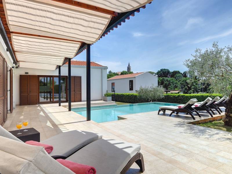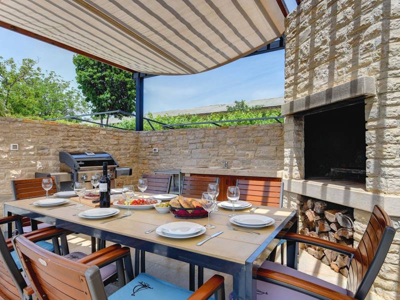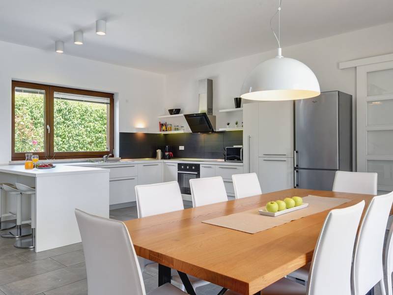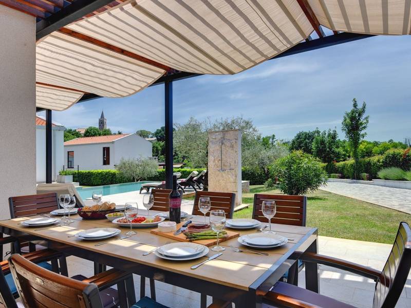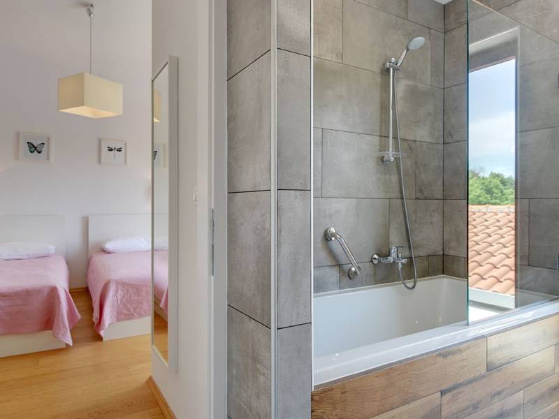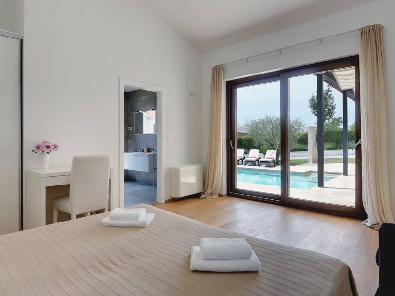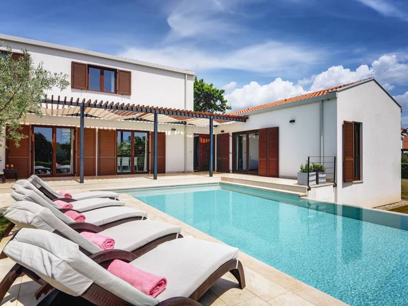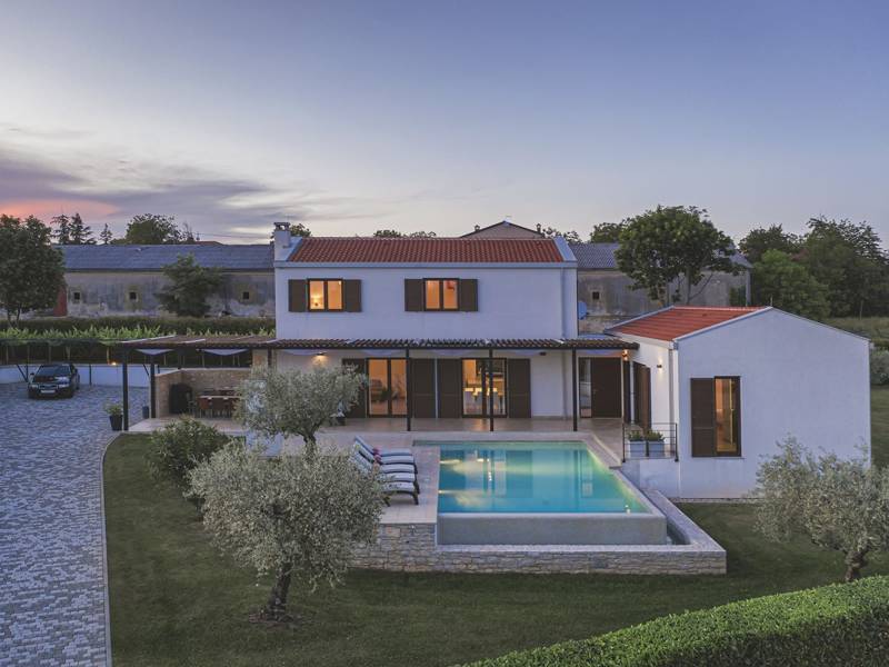 Entdecken Sie den Charme Mittelistriens bei einem Aufenthalt in der modernen Villa Luna Rossa, einem wunderschönen Anwesen, das Raffinesse und Komfort miteinander verbindet. Diese Villa verfügt über 220 Quadratmeter auf zwei Ebenen, umgeben von einem 1270 Quadratmeter großen, gepflegten Garten und einem 50 Quadratmeter großen Swimmingpool. Eine Außendusche, eine überdachte Terrasse mit Gartenmöbeln, ein Grillplatz und ein überdachter Parkplatz für bis zu drei Autos sorgen für zusätzliche Entspannung. Im Erdgeschoss erwartet Sie ein offener Wohn- und Essbereich, der direkt auf die Terrasse und den Pool führt. Die voll ausgestattete Küche sorgt für ein reibungsloses Kocherlebnis. Außerdem befindet sich auf dieser Ebene ein gemütliches Schlafzimmer mit einem Doppelbett und einem eigenen Bad. Von diesem Schlafzimmer aus hat man direkten Zugang zur Terrasse, wo man frühmorgens schwimmen oder spätabends ein Bad nehmen kann. Im ersten Stock finden Sie eine einzigartige Aufteilung mit einem begehbaren Schlafzimmer mit Doppelbett und eigenem Bad, das in ein weiteres Schlafzimmer mit einem ausziehbaren Bett für zwei Personen führt. Auf dieser Etage befindet sich ein weiteres Schlafzimmer mit zwei Einzelbetten und eigenem Bad, so dass die Privatsphäre und der Komfort für alle Gäste gewährleistet sind. Die Villa Luna Rossa ist mit Terrassenmöbeln, Liegestühlen, einem Safe und kinderfreundlichen Annehmlichkeiten wie einem Hochstuhl und einem Babybett ausgestattet. Die günstige Lage der Villa, nur 600 m vom nächsten Geschäft und 1 km von einem lokalen Restaurant sowie von Wander- und Radwegen entfernt, lädt dazu ein, die malerische Umgebung zu erkunden. Die Villa Luna Rossa ist ideal für Familien oder Gruppen, die eine Mischung aus Luxus und Komfort in der idyllischen Umgebung Istriens suchen, und verspricht einen unvergesslichen Aufenthalt.