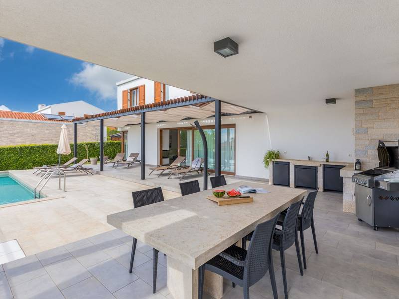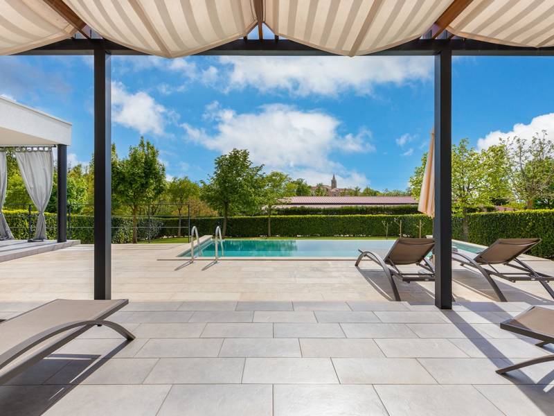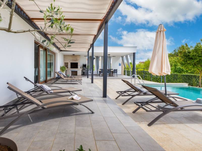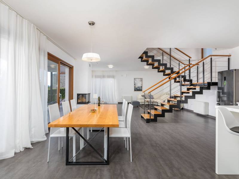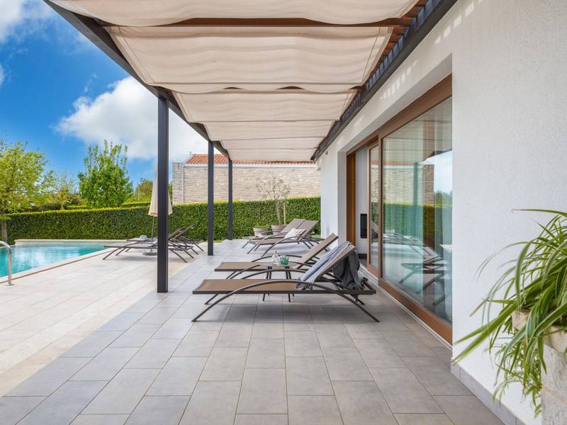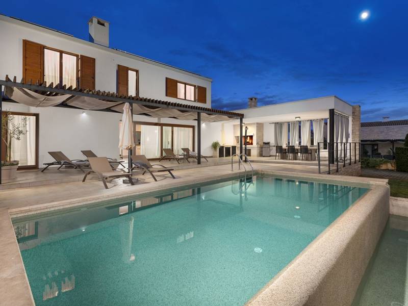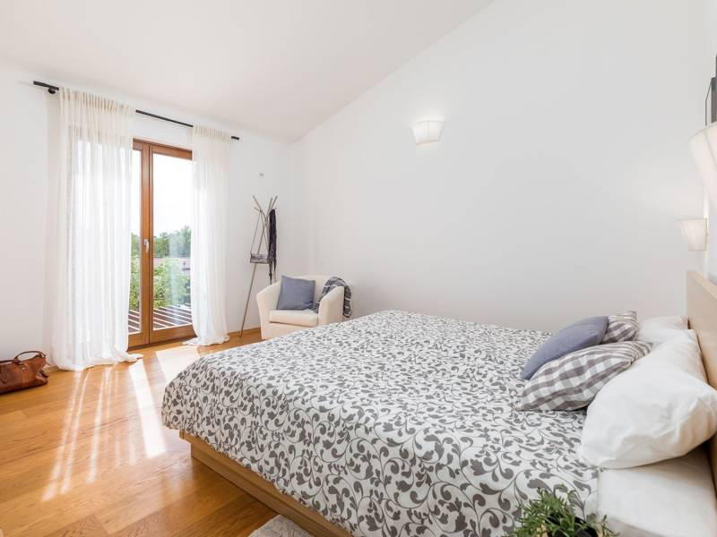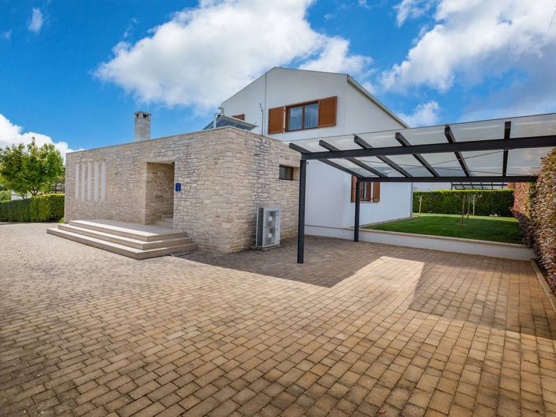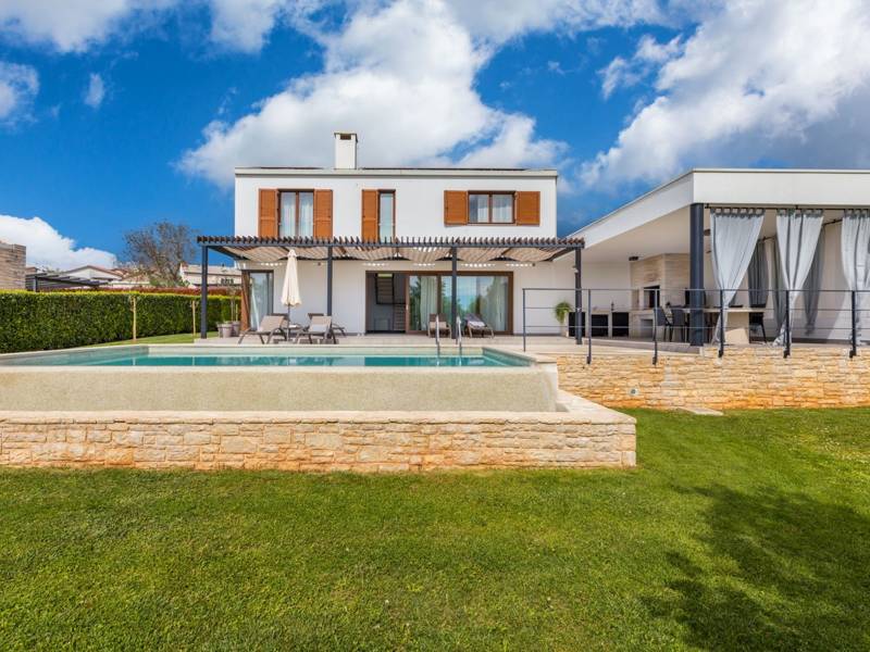 Entfliehen Sie in die Villa Terra Grigia, einen atemberaubenden Rückzugsort im mediterranen Stil im Dorf Sveti Petar u Šumi, im Herzen Zentralistriens. Diese exquisite Villa ist Teil eines kleinen, exklusiven Komplexes von fünf Villen, die Privatsphäre und Luxus bieten. Die Villa Terra Grigia verbindet moderne Eleganz mit traditionellem Design und schafft eine warme und einladende Atmosphäre. Sie verfügt über drei wunderschön eingerichtete Schlafzimmer, zwei moderne Badezimmer und ein geräumiges, offenes Wohnzimmer, das in eine voll ausgestattete Küche übergeht, die jeden Komfort bietet. Treten Sie hinaus auf die reizvolle Terrasse, wo ein wunderschöner Infinity-Pool zu einem erfrischenden Bad unter dem sonnigen istrischen Himmel einlädt. Auf der Terrasse befindet sich auch eine Kochecke mit einem Gasgrill und Kohleoptionen, die sich perfekt für die Zubereitung köstlicher Mahlzeiten eignet. Die Villa bietet bequem Platz für bis zu 6 Personen und ist somit ideal für Familien oder kleine Gruppen, die einen ruhigen Urlaub verbringen möchten. Entdecken Sie den Charme Istriens von der Villa Terra Grigia aus, wo traditioneller Charme auf modernes Leben trifft, eingebettet in eine ruhige Dorflandschaft. Hier verspricht jeder Tag Entspannung und Erholung in Ihrem privaten Stück Paradies.