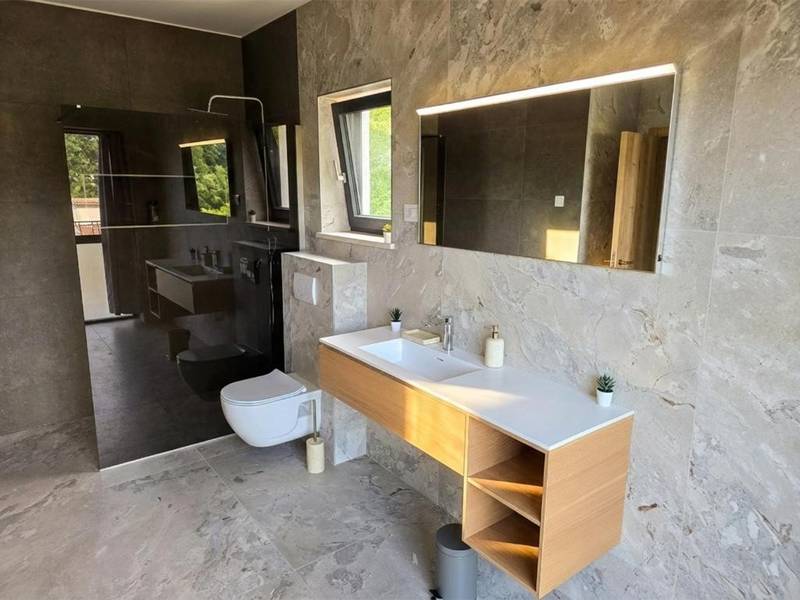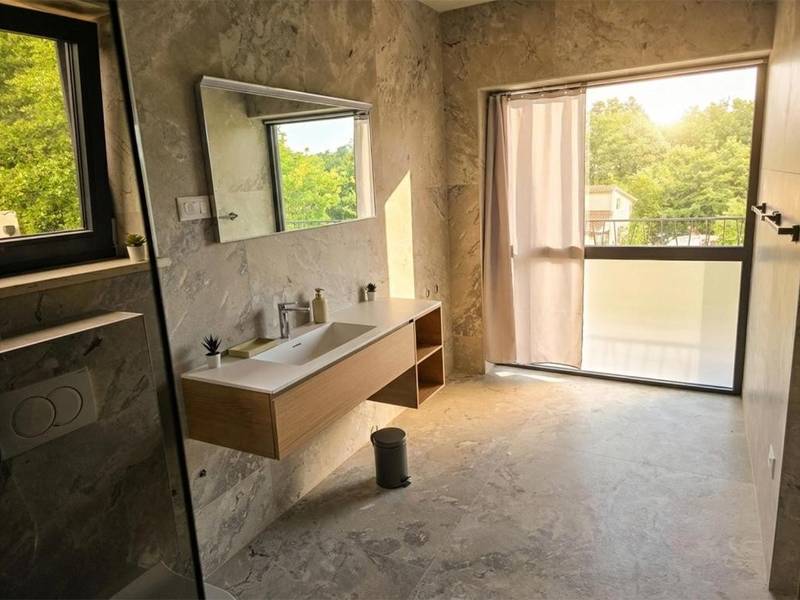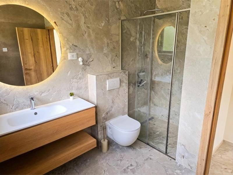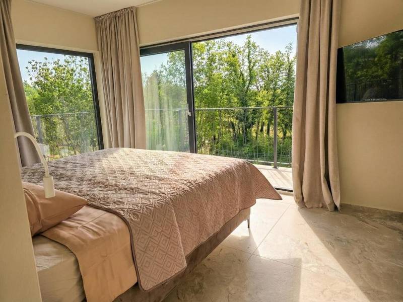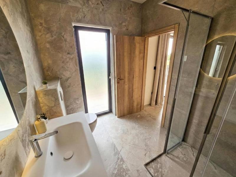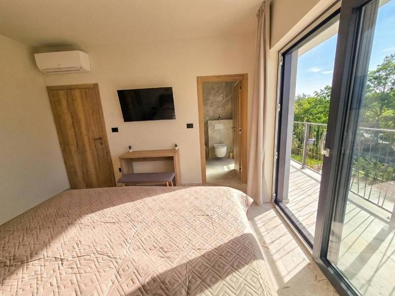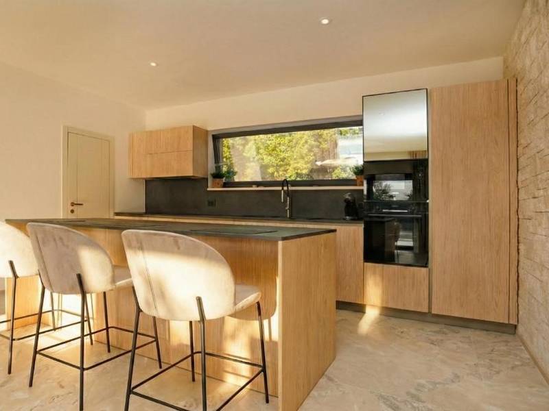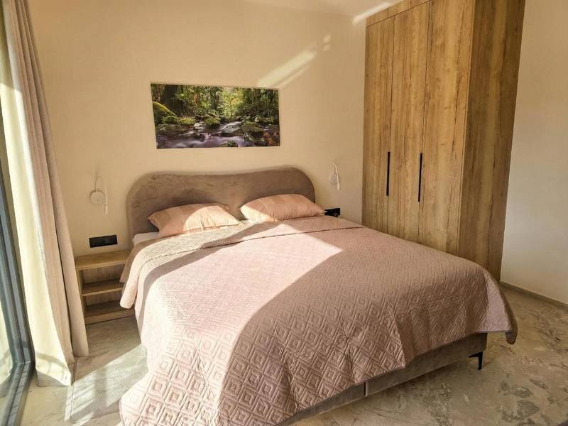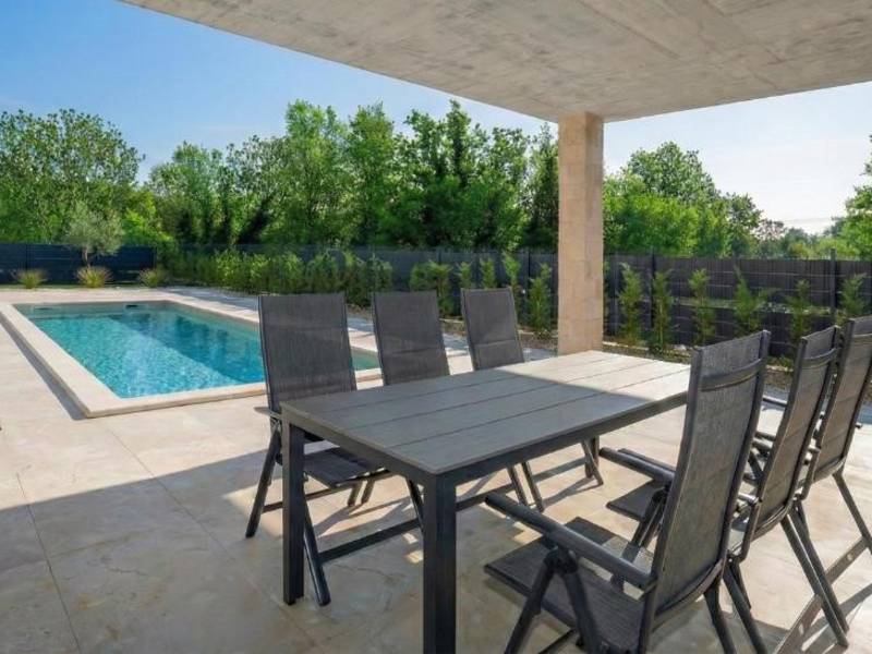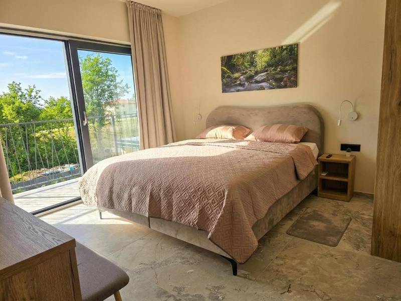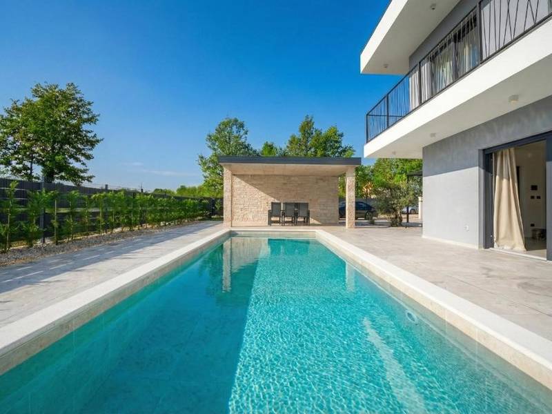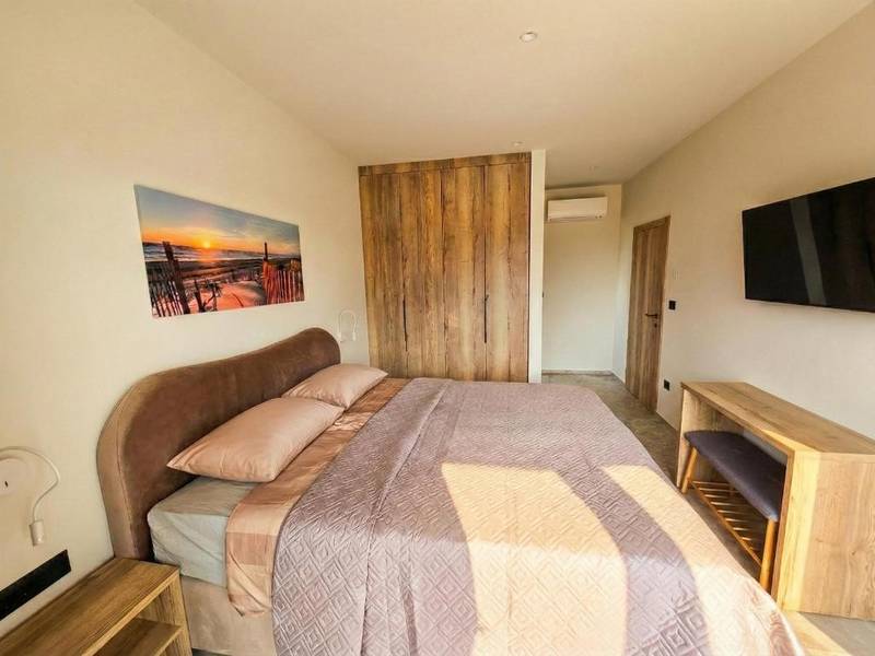 Die Kombination von modernem Design mit warmen Steinwänden und Holzdetails schafft ein Gefühl von Gemütlichkeit und Luxus. Im Erdgeschoss gibt es ein geräumiges, offenes Wohnzimmer mit einem großen, bequemen Sofa und Smart-TV, eine voll ausgestattete Küche, während eine große Insel mit Barhockern ein wunderbarer Ort für Ihren Morgenkaffee ist. In der ersten Etage befinden sich 3 moderne Schlafzimmer, die alle mit bequemen Betten und Klimaanlage ausgestattet sind. Die Gäste haben Zugang zu drei modernen Badezimmern mit Duschen sowie zu einer zusätzlichen Gästetoilette, die für zusätzlichen Komfort sorgt. Das Zentrum des Außenbereichs ist ein langer privater Swimmingpool, der von wunderschönen Olivenbäumen umgeben ist, die nachts beleuchtet werden und eine magische mediterrane Atmosphäre schaffen. Ein überdachter Essbereich im Freien ermöglicht es Ihnen, das Frühstück an der frischen Luft oder das Abendessen unter dem Sternenhimmel zu genießen. Auf dem Grundstück gibt es einen sicheren Parkplatz, und Sie haben exklusiven Zugang zum gesamten Haus und zum Pool, so dass Sie während Ihres Aufenthalts vollkommene Privatsphäre genießen können.