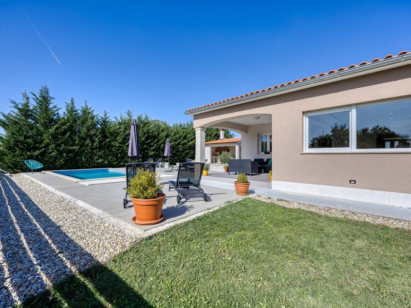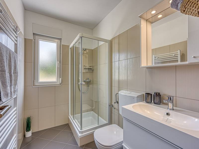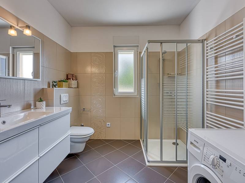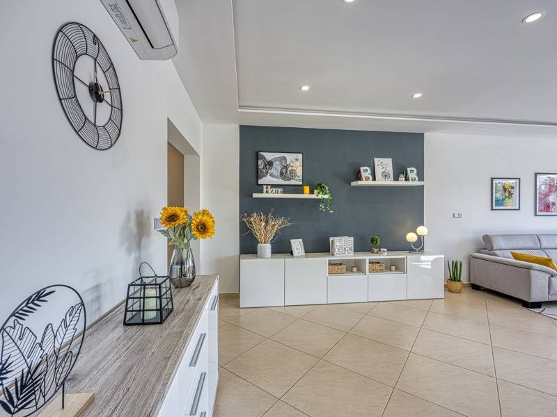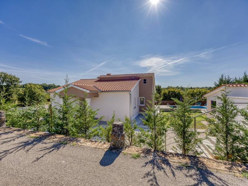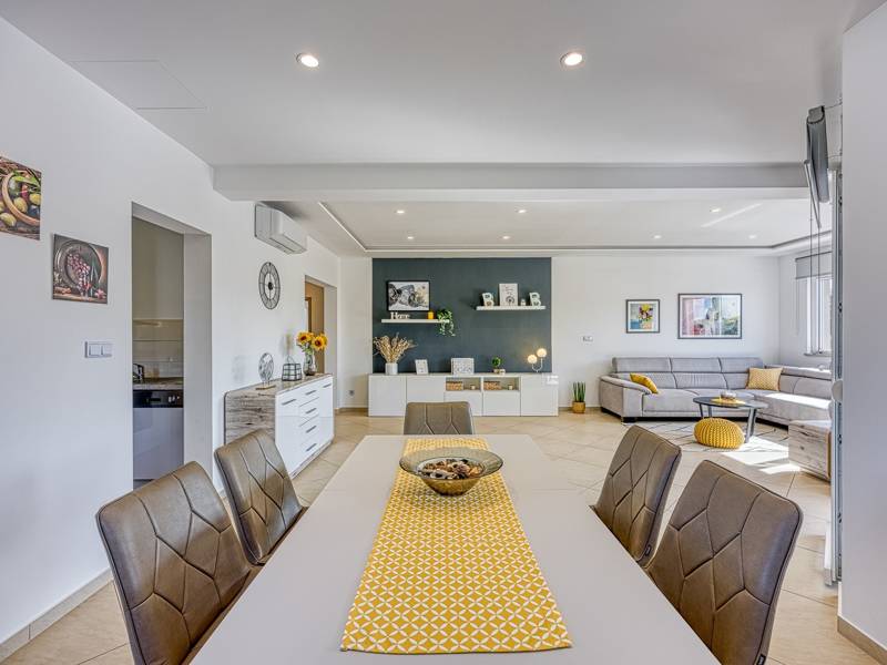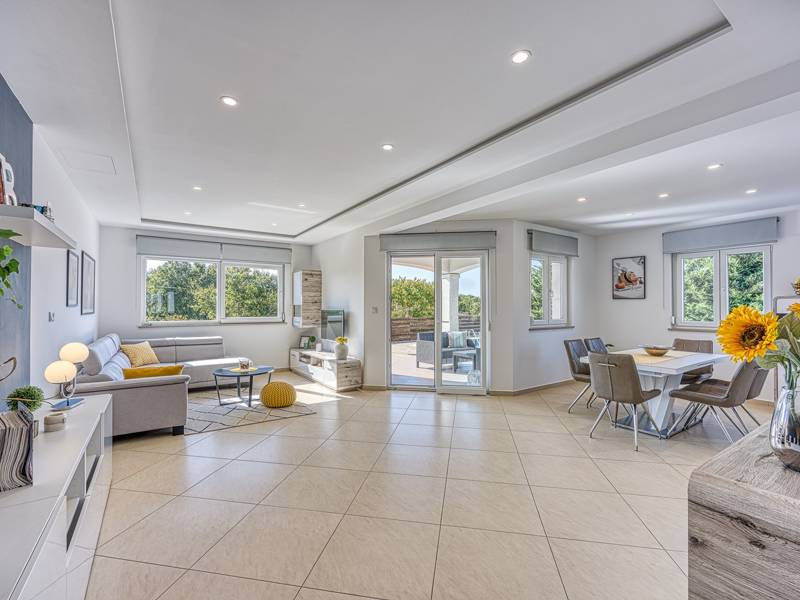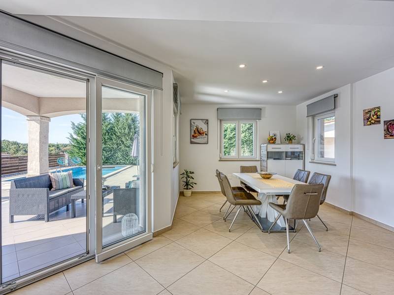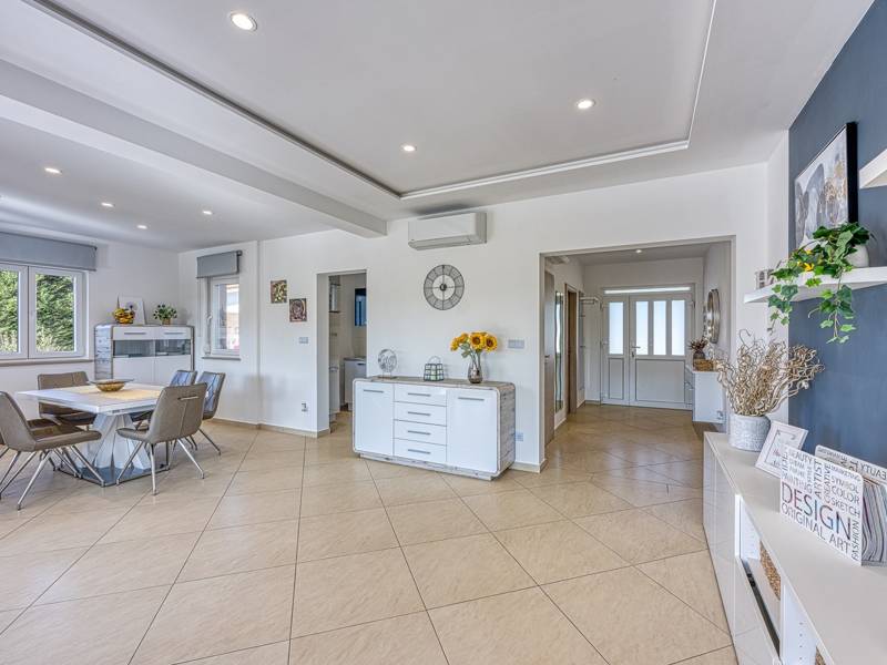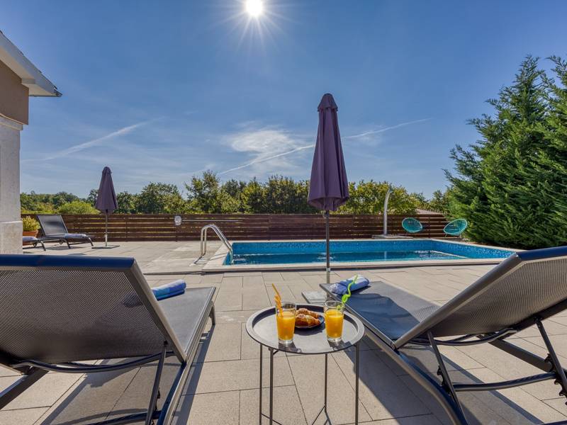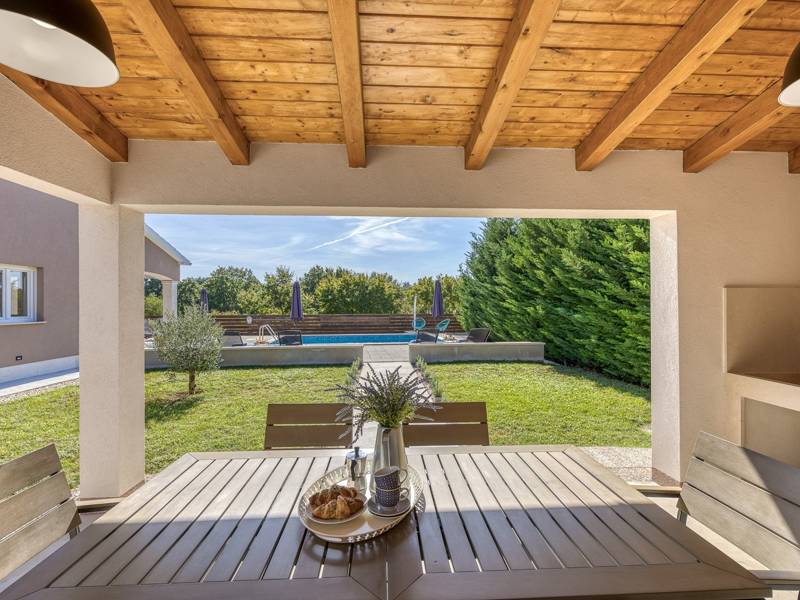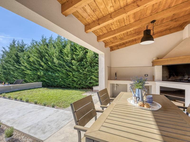 Die Villa Brijona ist ein wunderschönes Ferienhaus in dem idyllischen Dorf Bašići, in der Nähe der charmanten Stadt Tinjan. Umgeben von Natur, bietet es die perfekte Mischung aus modernem Komfort, elegantem Design und einer ruhigen Atmosphäre - ein idealer Rückzugsort für Familien oder Gruppen von Freunden. Die Villa verfügt über drei geräumige, geschmackvoll eingerichtete Schlafzimmer und zwei moderne Badezimmer, die maximalen Komfort für alle Gäste gewährleisten. Der helle, offene Wohnbereich mit einer voll ausgestatteten Küche, einem Essbereich und einer Lounge lädt zum Entspannen und Genießen ein, während große Glaswände den Innenraum mit natürlichem Licht füllen und auf eine schöne Terrasse führen. Der landschaftlich gestaltete Garten bietet absolute Privatsphäre mit einem privaten Pool, der von Sonnenliegen umgeben ist und an warmen istrischen Tagen zum Abkühlen und Sonnenbaden einlädt. Für Mahlzeiten im Freien steht ein Grillplatz zur Verfügung, ideal für die Zubereitung köstlicher Mahlzeiten an der frischen Luft. Die Villa Brijona ist die perfekte Wahl für diejenigen, die Ruhe, modernen Komfort und ein authentisches istrisches Urlaubserlebnis suchen...