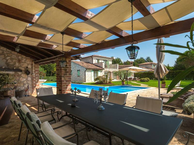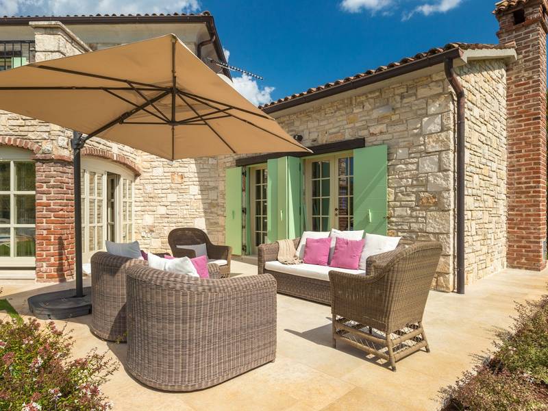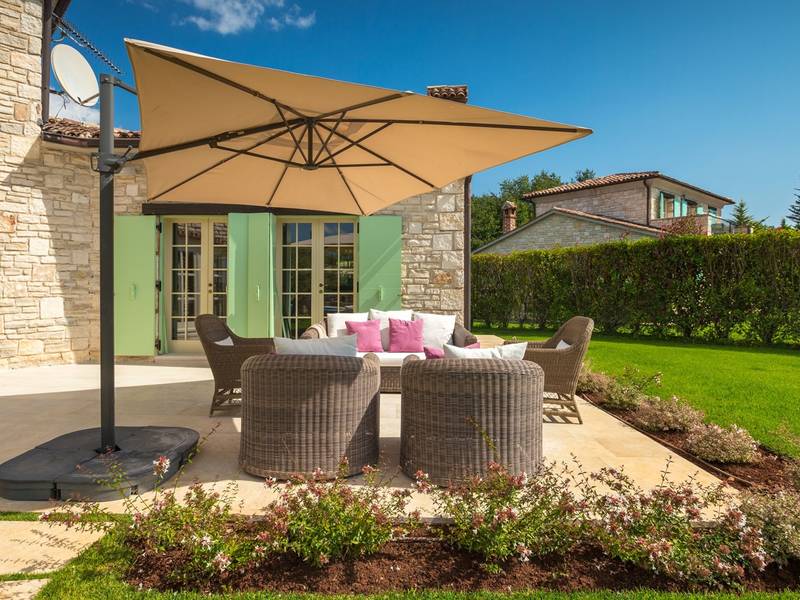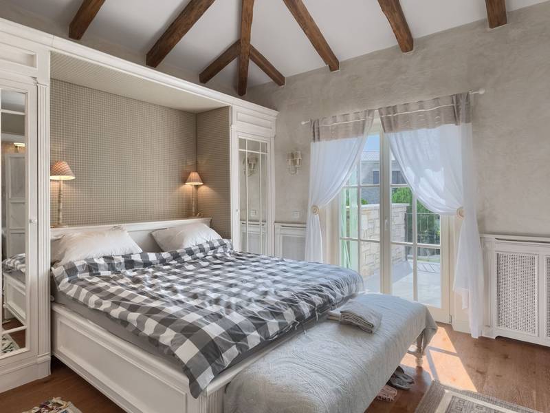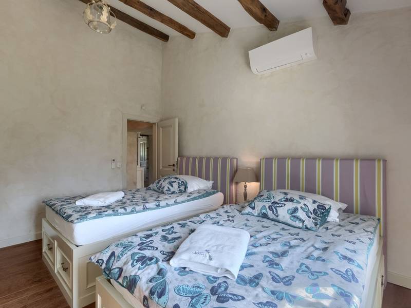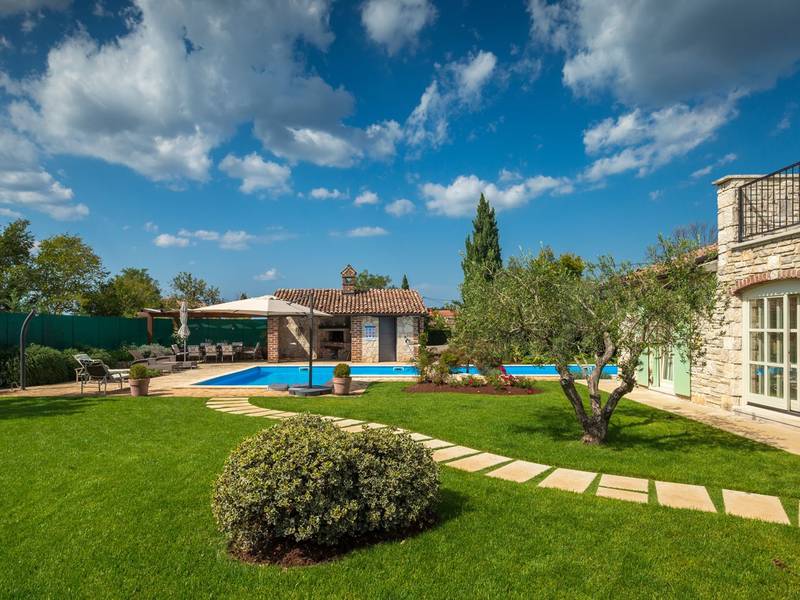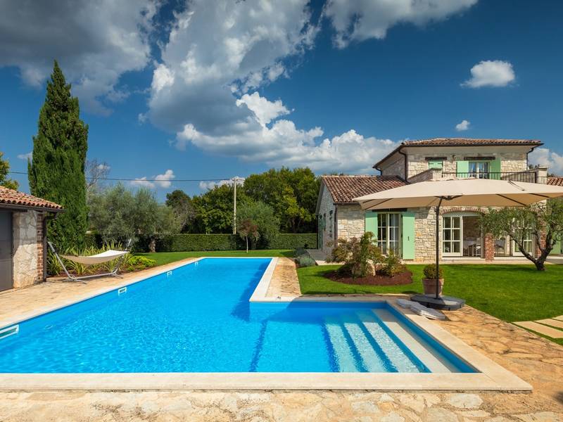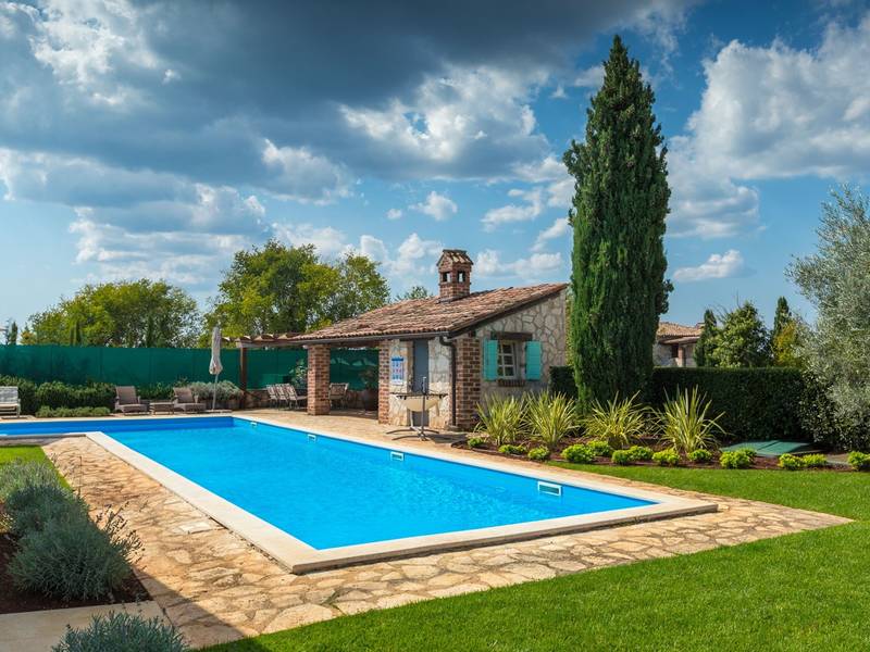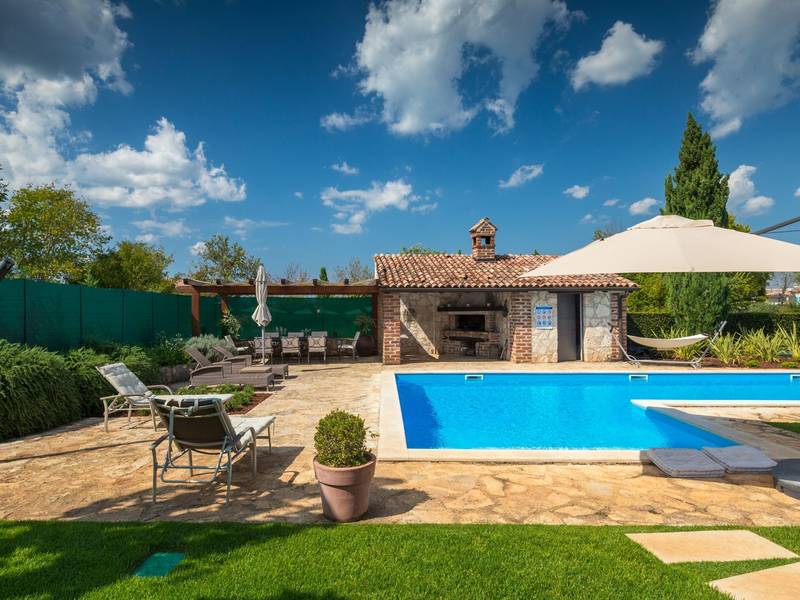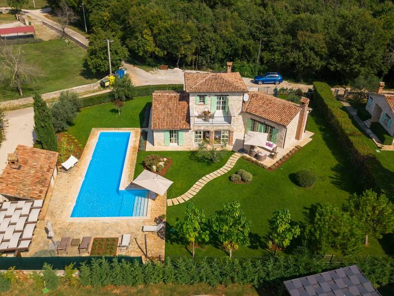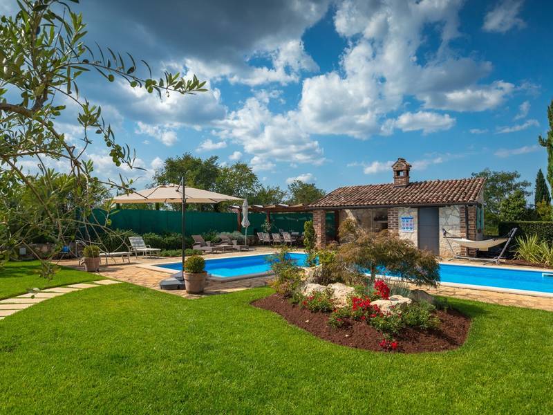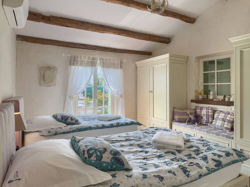 Die Villa Lavanda ist ein wunderschönes und luxuriöses Refugium auf dem Lande mit einem großzügigen Garten und einem herrlichen 64 m2 großen privaten Swimmingpool. Zentral in dem kleinen Dorf Ribari in Zentralistrien gelegen, ist diese Villa eine ideale Wahl für Familien, die Ruhe, Privatsphäre und Entspannung suchen, während sie gleichzeitig die Strände und Hauptattraktionen Istriens leicht erreichen können. Die Villa bietet drei romantisch eingerichtete Schlafzimmer und wurde mit viel Liebe zum Detail gestaltet. Im Erdgeschoss befindet sich ein geräumiges Wohnzimmer mit großen Fenstern, die direkt in den Garten führen, eine voll ausgestattete Küche und ein Essbereich, der von Fenstern umgeben ist, die einen schönen Blick auf den gepflegten Außenbereich bieten. Auf dieser Ebene befinden sich auch ein Gemeinschaftsbad und zwei Schlafzimmer, beide mit direktem Zugang zur Terrasse. Ein Schlafzimmer ist mit einem Kingsize-Bett (180 × 200 cm) und einem Fernseher ausgestattet, während das zweite Schlafzimmer über zwei Betten (je 140 × 200 cm) verfügt. Im Obergeschoss befindet sich ein drittes Schlafzimmer mit einem Kingsize-Bett (200 × 200 cm), einem Fernseher, einem eigenen Bad und direktem Zugang zu einem privaten Balkon mit Blick auf die umliegende Landschaft. Alle Schlafzimmer sind klimatisiert und mit Moskitonetzen an den Fenstern ausgestattet, um maximalen Komfort zu gewährleisten. Der Außenbereich, in dem die Gäste wahrscheinlich die meiste Zeit verbringen werden, ist zum puren Vergnügen gedacht. Eine überdachte Terrasse mit einem großen Esstisch und einem Holzkohlegrill bietet den perfekten Rahmen für Mahlzeiten im Freien. Das Highlight des Anwesens ist der beeindruckende 64 m2 große Swimmingpool, der von sechs bequemen Sonnenliegen und einer großzügigen Sonnenterrasse umgeben ist und eine private Oase der Entspannung darstellt. Zur zusätzlichen Unterhaltung stehen den Gästen Tischtennis, eine PlayStation, Fitnessgeräte und ein Trampolin für jüngere Kinder zur Verfügung. Die Villa Lavanda bietet Spaß und Entspannung für Gäste jeden Alters. Die Villa ist voll klimatisiert, bietet kostenloses Wi-Fi und das komplett umschlossene Grundstück verfügt über drei Parkplätze. Mit ihrer ruhigen Lage, dem modernen Komfort und den ausgezeichneten Unterhaltungsmöglichkeiten verspricht die Villa Lavanda ein unvergessliches und angenehmes Urlaubserlebnis. HINWEIS: - Ein Babybett und ein Hochstuhl sind auf Anfrage erhältlich. Bitte informieren Sie uns im Voraus, damit der Eigentümer alles für Ihre Ankunft vorbereiten kann - Haustiere sind nicht erlaubt - Jugendgruppen werden nur nach vorheriger Absprache akzeptiert. Eine Jugendgruppe ist eine Gruppe, die aus Personen bis 26 Jahren besteht. Wenn Sie eine Jugendgruppe sind, setzen Sie sich bitte vor der Reservierung mit uns in Verbindung, da die Reservierung nach der Buchung, d.h. bei der Ankunft oder während Ihres Aufenthalts, abgelehnt werden kann und Sie möglicherweise keine Rückerstattung erhalten.