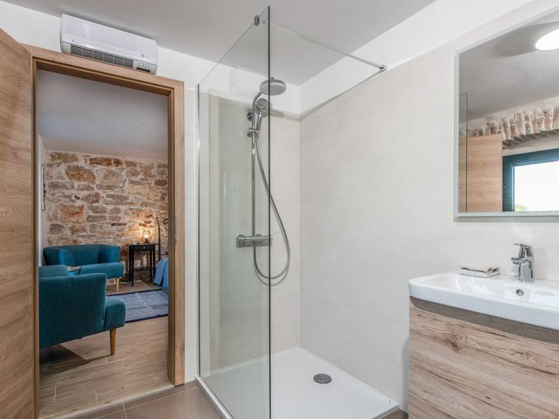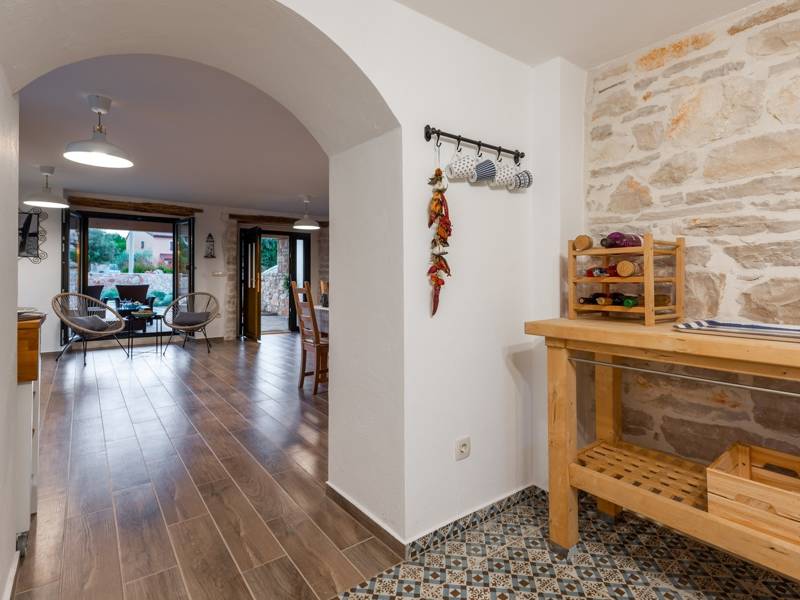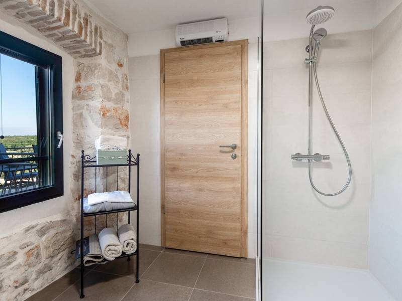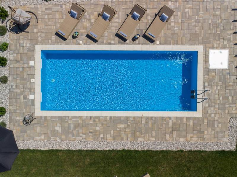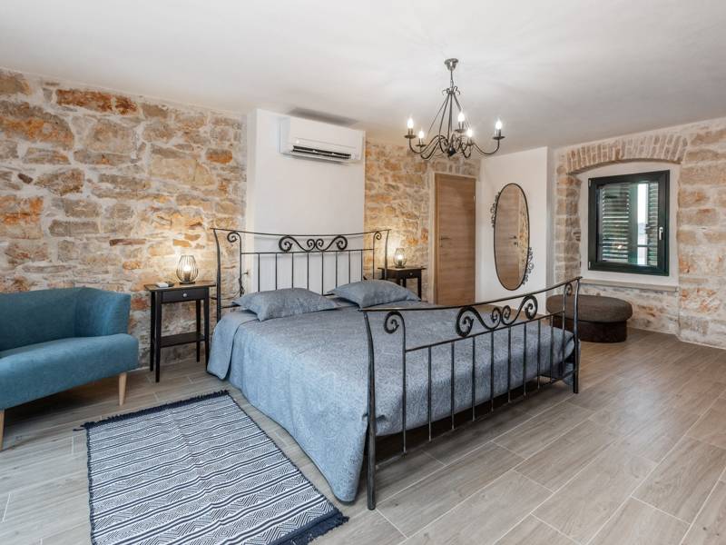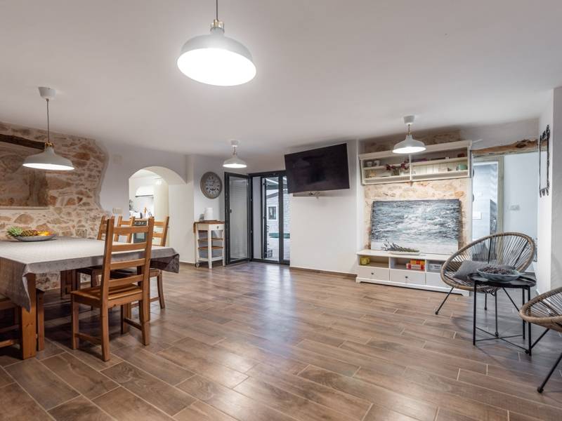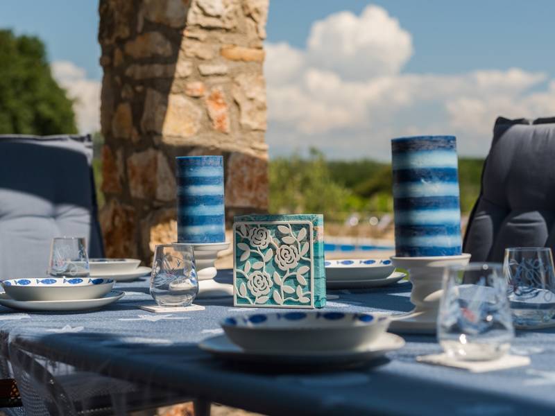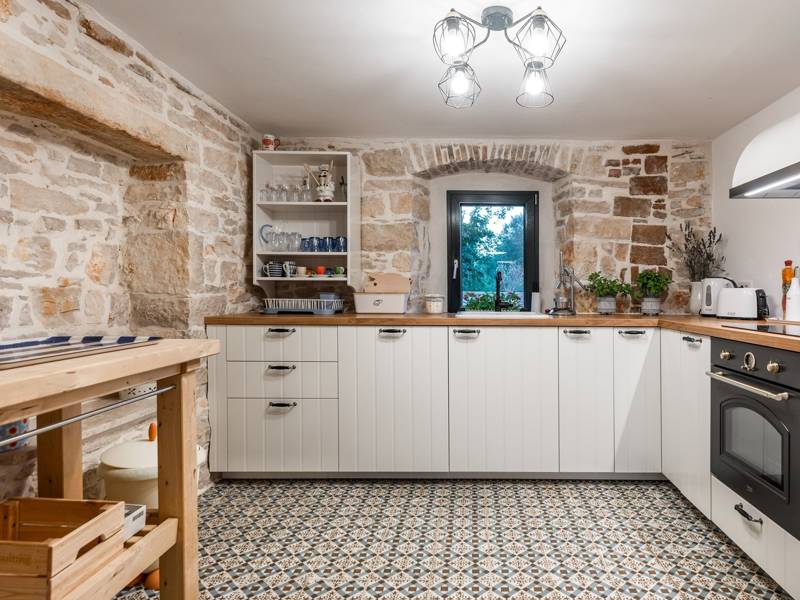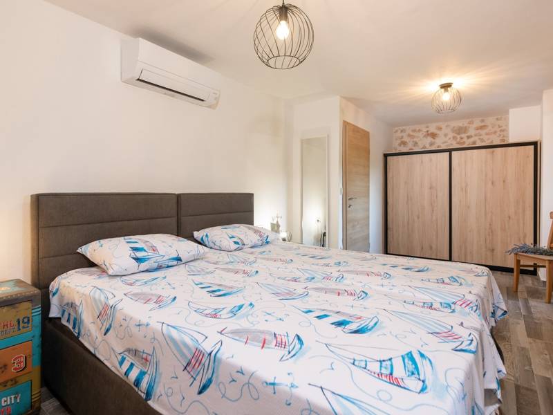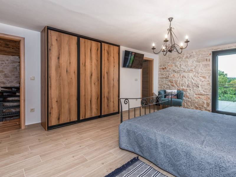 Entspannen und erholen Sie sich in der schönen Villa Francesca, die in der ruhigen Natur des Nordens von Istrien, nicht weit von Umag, liegt. Diese rustikale Villa kann bis zu 8 Personen beherbergen und ist somit die perfekte Wahl für ein Familientreffen oder eine größere Gruppe von Freunden. Die vollklimatisierte Steinvilla bietet alles, was Sie für einen unvergesslichen Urlaub brauchen könnten. Es stehen Ihnen vier charmante Schlafzimmer zur Verfügung, zwei mit Doppelbetten und zwei mit Einzelbetten, jeweils mit eigenem Bad. Im geräumigen Erdgeschoss befindet sich eine voll ausgestattete, rustikale Küche, in der Sie köstliche Mahlzeiten zubereiten können, die Sie am Esstisch im Wohnzimmer servieren können. Das geräumige Wohnzimmer verfügt über große Glastüren, die einen direkten Zugang zur überdachten Terrasse mit Sitzecke und zum Hof ermöglichen. Im geräumigen Garten befindet sich ein wunderschöner Swimmingpool mit dazugehörigen Liegestühlen, um den ganzen Tag in der mediterranen Sonne zu genießen. Neben dem Pool gibt es ein Poolhaus, in dem Sie eine Sauna, ein Fitnessgerät und einen Heimtrainer finden. Außerdem gibt es einen Esstisch im Freien, an dem Sie die auf dem Holzgrill zubereiteten Mahlzeiten servieren können.