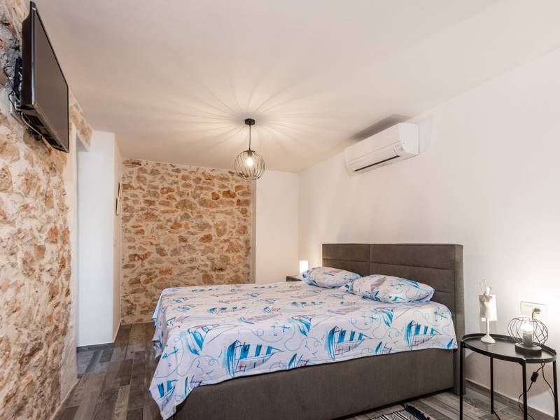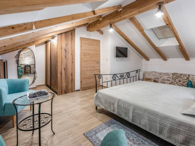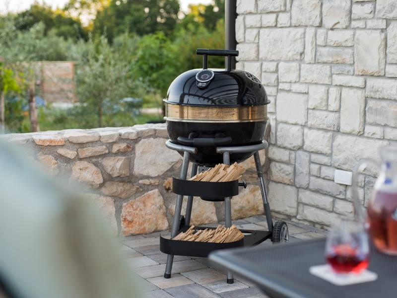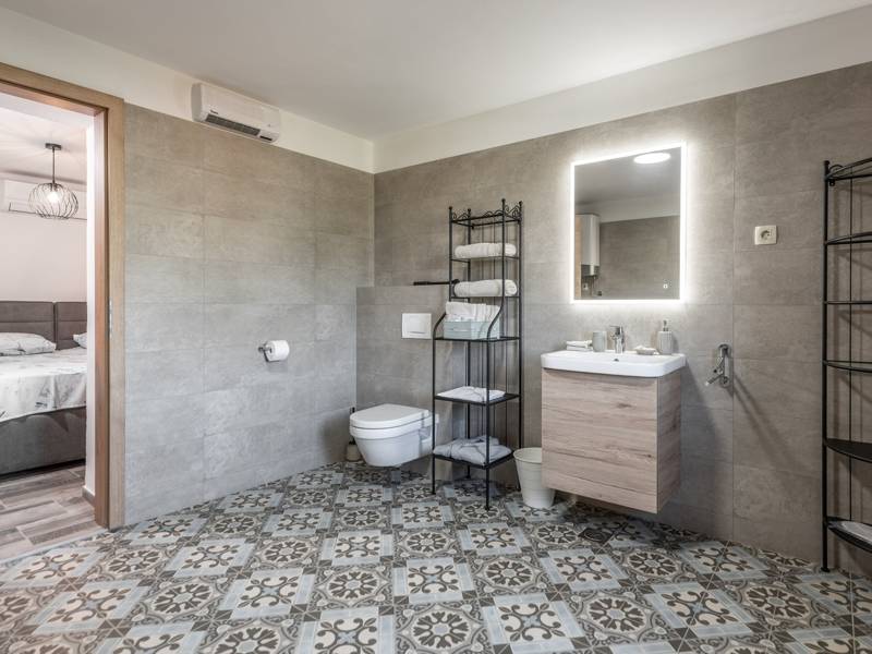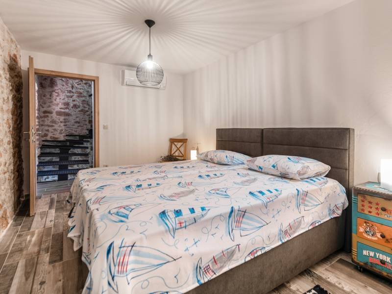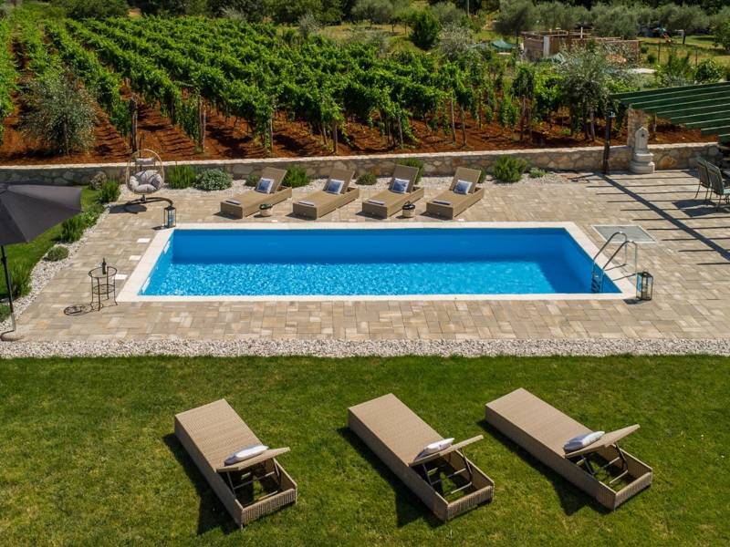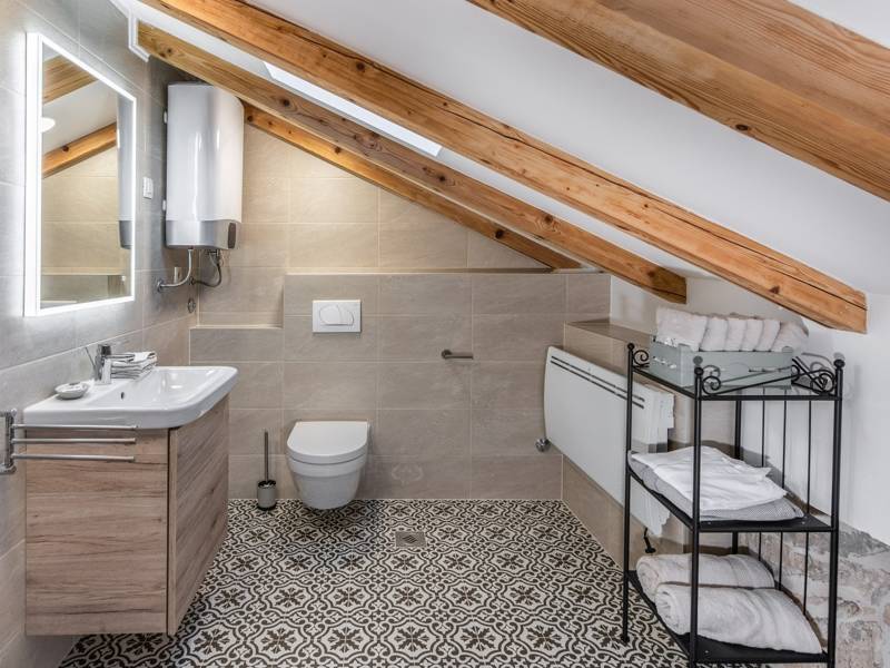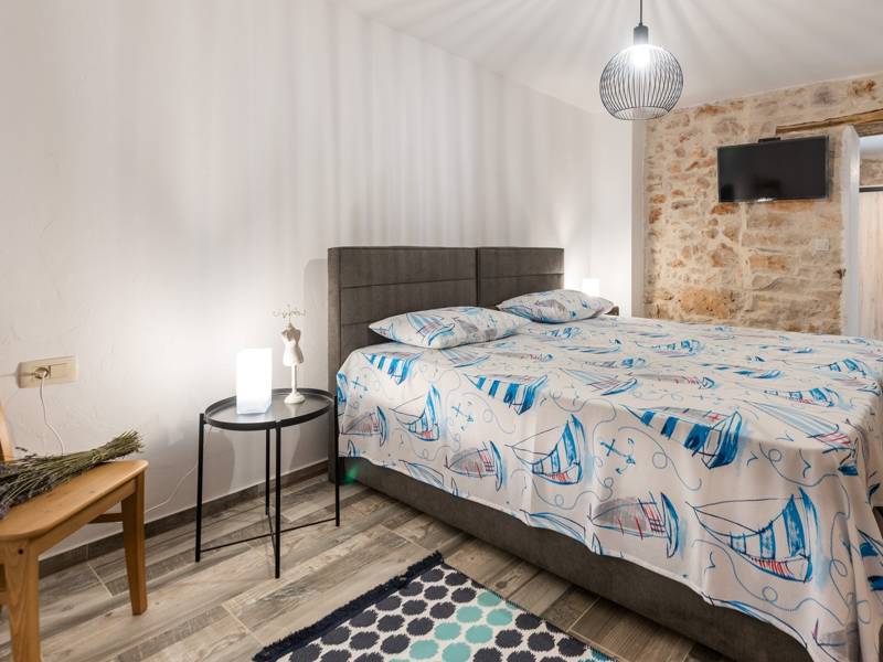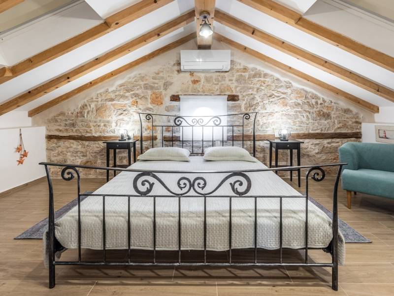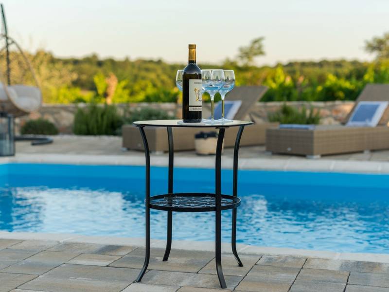 Entspannen und erholen Sie sich in der schönen Villa Francesca, die in der ruhigen Natur des Nordens von Istrien, nicht weit von Umag, liegt. Diese rustikale Villa kann bis zu 8 Personen beherbergen und ist somit die perfekte Wahl für ein Familientreffen oder eine größere Gruppe von Freunden. Die vollklimatisierte Steinvilla bietet alles, was Sie für einen unvergesslichen Urlaub brauchen könnten. Es stehen Ihnen vier charmante Schlafzimmer zur Verfügung, zwei mit Doppelbetten und zwei mit Einzelbetten, jeweils mit eigenem Bad. Im geräumigen Erdgeschoss befindet sich eine voll ausgestattete, rustikale Küche, in der Sie köstliche Mahlzeiten zubereiten können, die Sie am Esstisch im Wohnzimmer servieren können. Das geräumige Wohnzimmer verfügt über große Glastüren, die einen direkten Zugang zur überdachten Terrasse mit Sitzecke und zum Hof ermöglichen. Im geräumigen Garten befindet sich ein wunderschöner Swimmingpool mit dazugehörigen Liegestühlen, um den ganzen Tag in der mediterranen Sonne zu genießen. Neben dem Pool gibt es ein Poolhaus, in dem Sie eine Sauna, ein Fitnessgerät und einen Heimtrainer finden. Außerdem gibt es einen Esstisch im Freien, an dem Sie die auf dem Holzgrill zubereiteten Mahlzeiten servieren können.