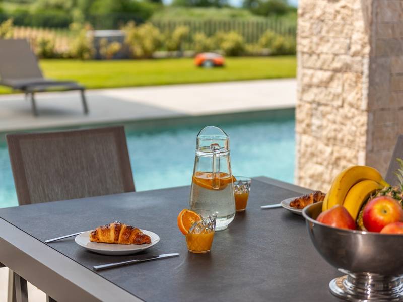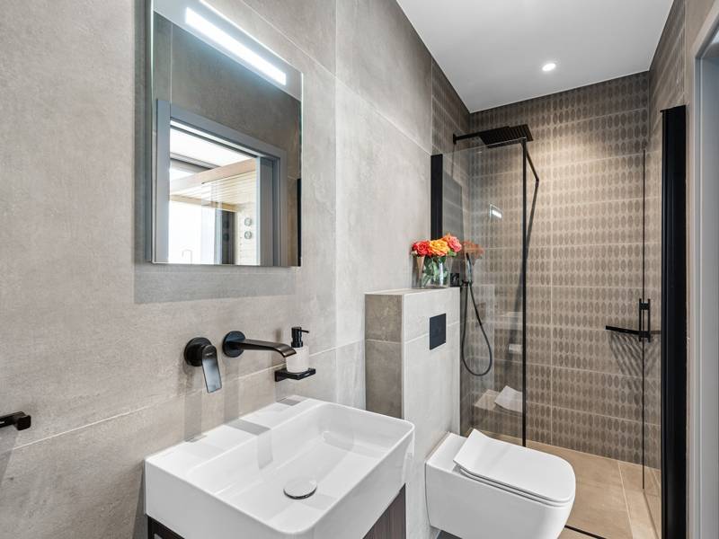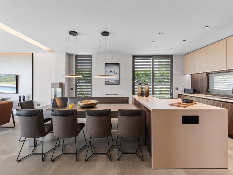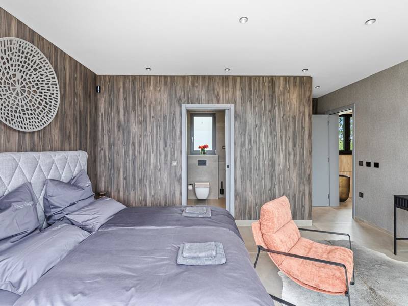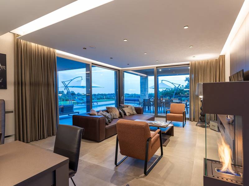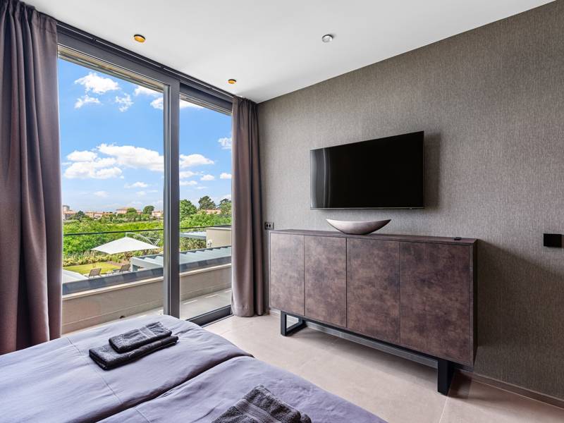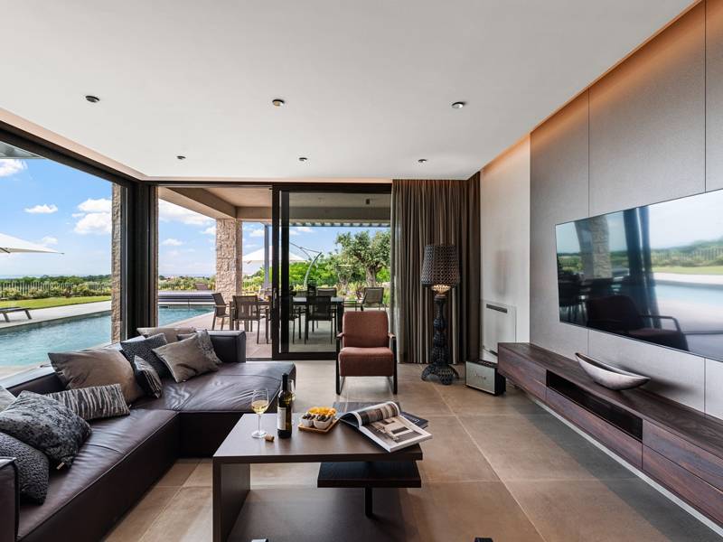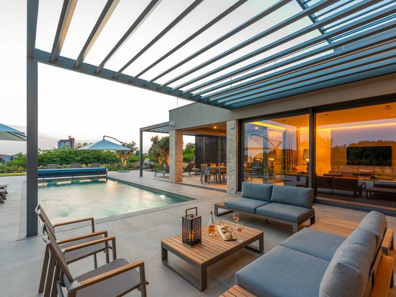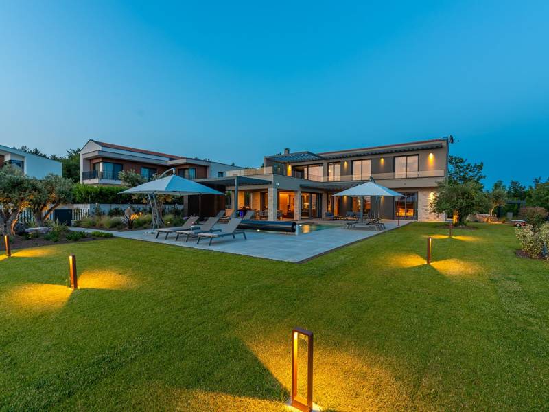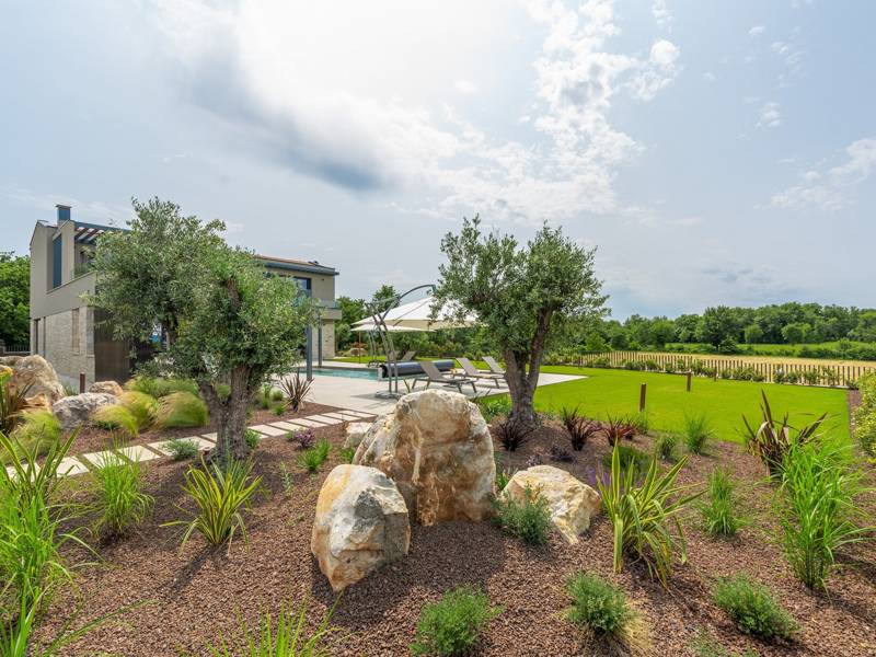In der ruhigen Stadt Višnjan im Herzen von Istrien gelegen, bietet die Villa Visignano die perfekte Mischung aus Luxus, Komfort und moderner Eleganz. Diese geräumige Villa mit 230 m2 bietet Platz für bis zu 8 Personen und befindet sich auf einem vollständig umzäunten Grundstück von 1.144 m2, ideal für einen ruhigen und sicheren Aufenthalt. Im Erdgeschoss befindet sich ein elegantes, offenes Wohnzimmer mit Kamin, eine voll ausgestattete moderne Küche und ein Essbereich mit Zugang zur überdachten Sommerküche und einer großen Sonnenterrasse mit beheiztem Privatpool (49 m2). Auf dieser Etage befinden sich auch eine Sauna und ein Schlafzimmer mit eigenem Bad. In der ersten Etage befinden sich drei stilvoll eingerichtete Schlafzimmer, jedes mit eigenem Bad und Zugang zu einer Terrasse. Das Hauptschlafzimmer zeichnet sich durch eine geräumige Terrasse mit Jacuzzi und atemberaubendem Blick auf das Meer und die Landschaft aus. Die Villa ist voll klimatisiert und mit Fußbodenheizung, Waschmaschine, Trockner, Smart TV in jedem Zimmer und kostenlosem Wi-Fi ausgestattet. Die Gäste haben Zugang zu drei privaten Parkplätzen, einem Gasgrill, Sonnenliegen und Sonnenschirmen. Haustiere sind nicht erlaubt, und die Villa ist nicht für Jugendgruppen, sondern nur für Familien mit Kindern geeignet. Dank ihrer Lage ist die Villa Visignano die perfekte Wahl für Gäste, die die Schönheit Istriens erkunden möchten - das Meer ist nur 13 km entfernt, und Restaurants, Geschäfte und das Stadtzentrum sind nur 500 m entfernt.