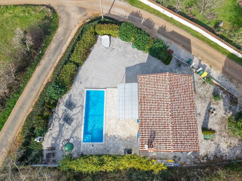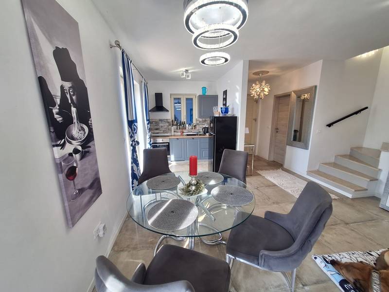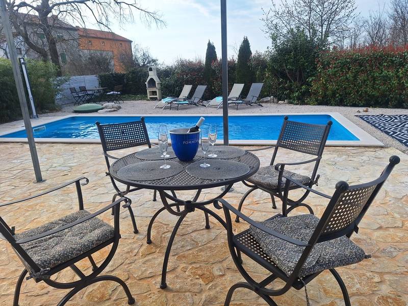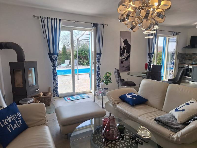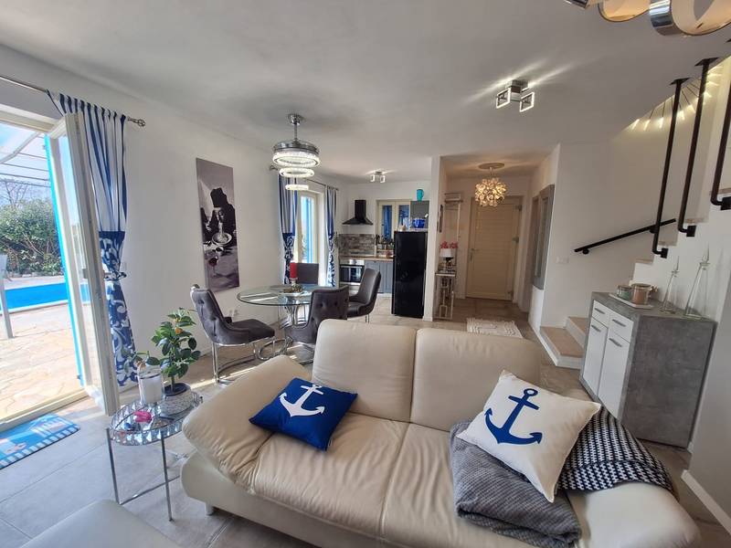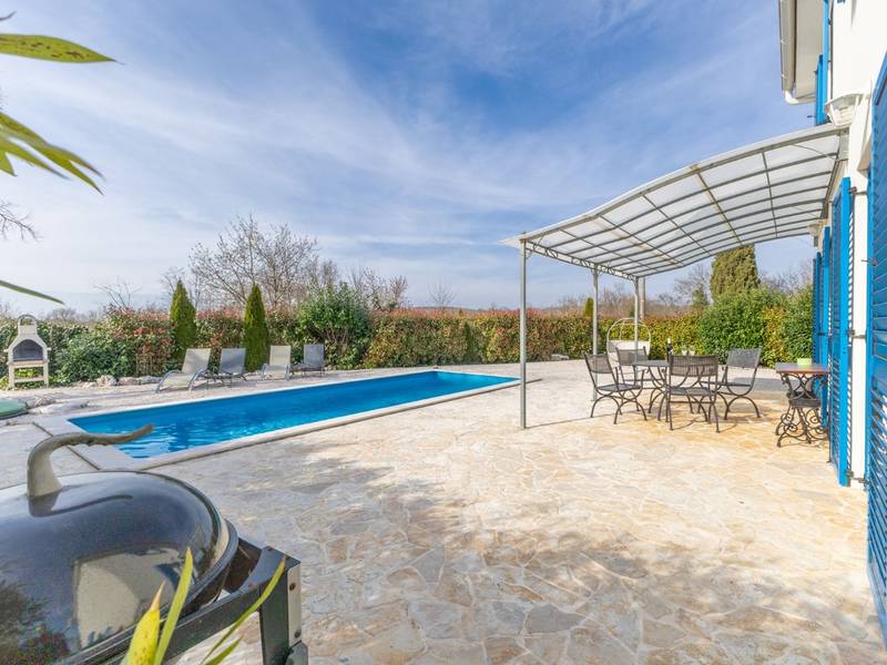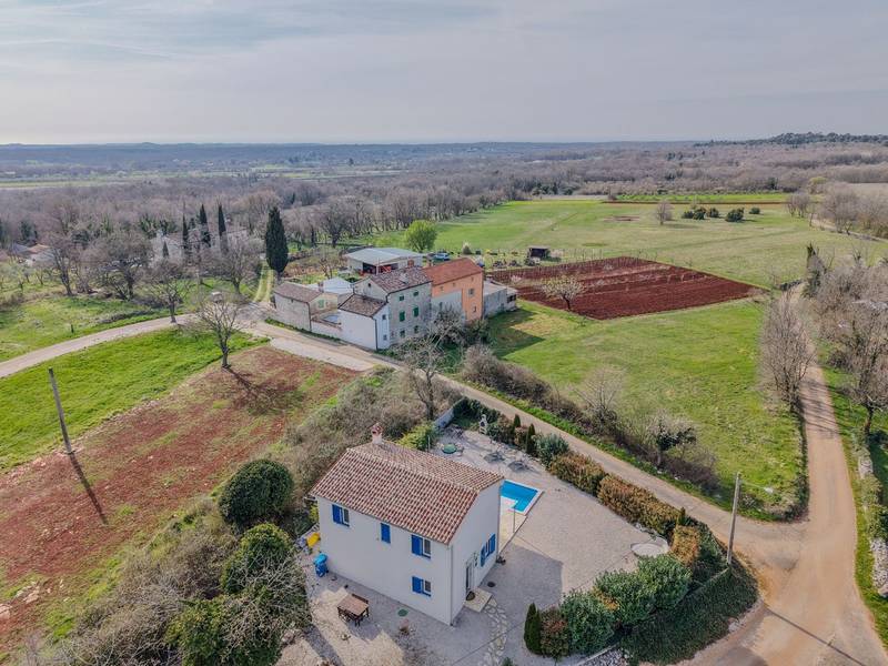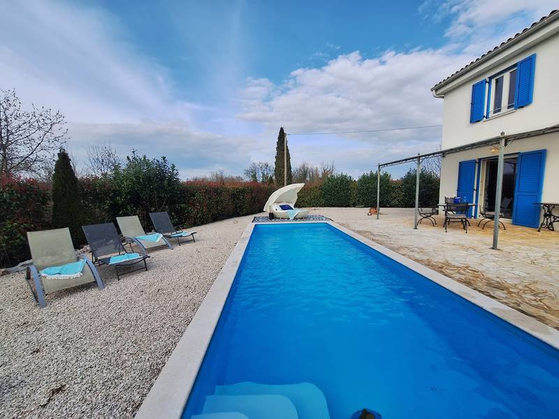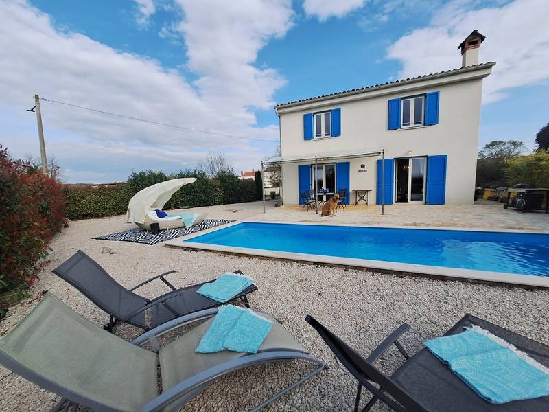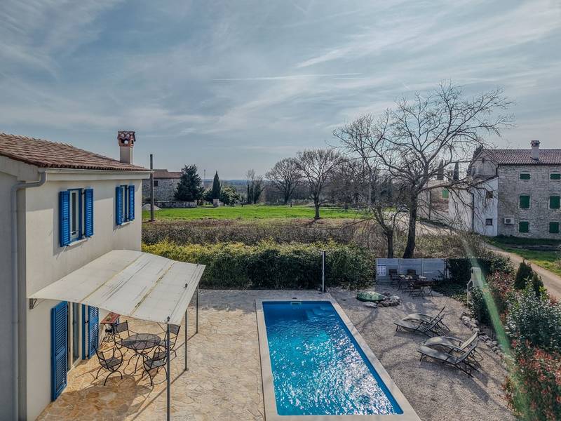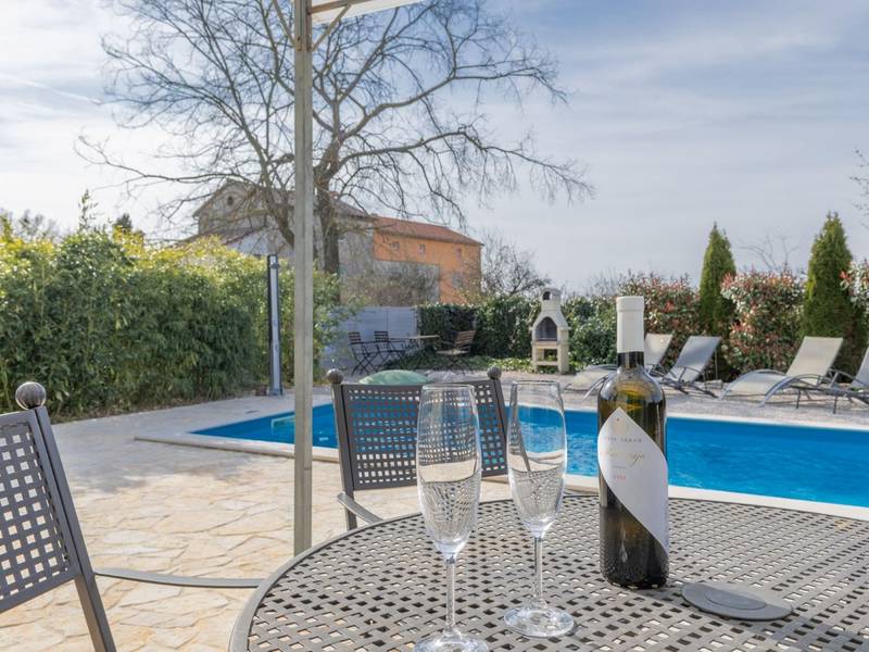 Die Villa Shana befindet sich in dem ruhigen Dorf Košutići in der Nähe von Višnjan und bietet einen komfortablen Aufenthalt in einer authentischen istrischen Umgebung, nur eine kurze Fahrt von lokalen Restaurants, Geschäften und den Stränden und Attraktionen von Poreč entfernt. Die Villa ist haustierfreundlich (bis zu 2 Haustiere) und verfügt über einen komplett eingezäunten Garten mit privatem Pool und Holzkohlegrill, ideal zum Entspannen im Freien. Im Erdgeschoss befinden sich eine moderne Küche, ein geräumiger Wohnbereich und ein Gäste-WC, während das Obergeschoss zwei Schlafzimmer mit jeweils eigenem Bad mit Dusche bietet; von einem Schlafzimmer aus können die Gäste an klaren Tagen einen weiten Blick auf das Meer genießen. Empfehlenswerte Aktivitäten in der Nähe sind Besuche der örtlichen Bauernhöfe mit traditioneller Küche, der Baredine-Höhle, des kinderfreundlichen Tractor-Story-Museums und der schönen Strände an der Küste von Poreč.