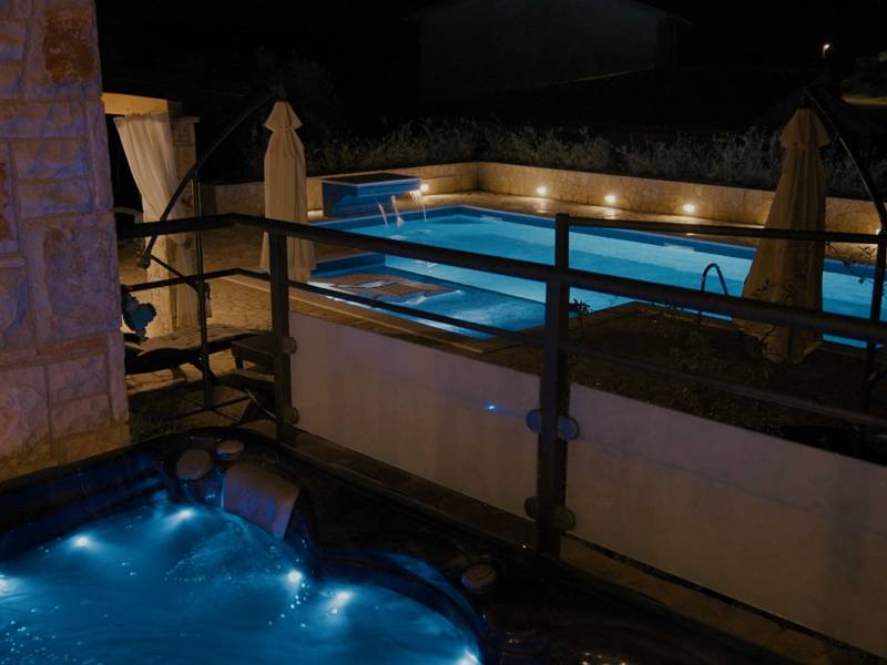 Gönnen Sie sich die perfekte Mischung aus Luxus und Komfort in der Villa Kalista, die sich in Barbariga bei Pula befindet. Dieser Rückzugsort ist ideal für große Familien oder Gruppen von Freunden und verfügt über 4 Schlafzimmer, 4 Badezimmer und verlockende Annehmlichkeiten im Freien. Die Terrasse, die mit einem Swimmingpool und einem Whirlpool ausgestattet ist, bietet überdachte Plätze zum Faulenzen und offene Bereiche für sonnenverwöhnte Ruhepausen. Die Gäste können den Essbereich im Freien und die spielerischen Schaukeln für alle Altersgruppen genießen. Die voll ausgestattete, moderne Küche mit Holz-, Gas- und Elektrogrill ist ideal für Grillfans. Erkunden Sie die Umgebung mit den vier zur Verfügung gestellten Fahrrädern oder unterhalten Sie sich zu Hause mit Darts, PlayStation oder einer entspannten Netflix-Sitzung. Ein gesicherter Parkplatz mit Videoüberwachung und die Möglichkeit, in einer Garage zu parken, sorgen für zusätzlichen Seelenfrieden. Die Villa Kalista verspricht einen außergewöhnlichen Urlaub, der Raffinesse, Erholung und die Wärme eines Zuhauses miteinander verbindet. Buchen Sie Ihren Aufenthalt für ein unvergleichliches Erlebnis des Genusses und der Freude. Wichtige Informationen für Villa Kalista: Es handelt sich um ein Doppelhaus, Garage für ein Auto und Fahrräder, 2 Parkplätze auf dem Hof mit Videoüberwachung, Wifi Geschwindigkeit 30 Mb/s