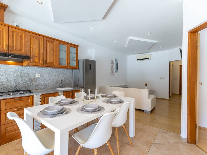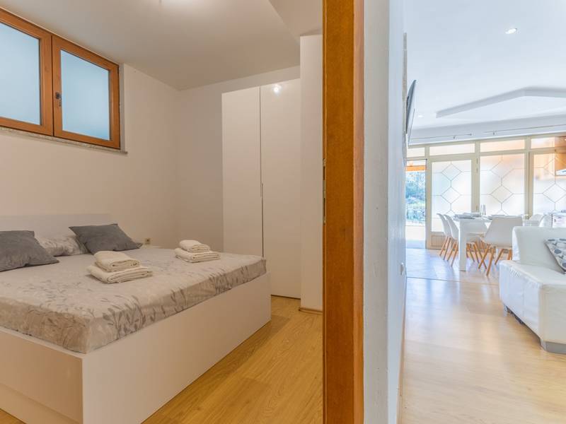 Diese gemütliche Wohnung in Vrsar befindet sich im Erdgeschoss und ist ideal für einen Familienurlaub oder einen Aufenthalt mit Freunden für bis zu 6 Personen. Es besteht aus zwei komfortablen Schlafzimmern, einer Küche und einem Wohnzimmer, das ein Gefühl von häuslicher Atmosphäre vermittelt. Ein besonderer Vorteil der Wohnung ist die geräumige Terrasse mit Außengrill, die zum Entspannen und Genießen von warmen Abenden mit gutem Essen und Gesellschaft einlädt. Die Wohnung befindet sich in einer ruhigen Lage, nur 1000 Meter vom Meer und 800 Meter vom Zentrum von Vrsar, die einen einfachen Zugang zu den Stränden, Restaurants und alle notwendigen Annehmlichkeiten ermöglicht. Den Gästen steht ein kostenloser Parkplatz zur Verfügung, was ebenfalls zu einem sorgenfreien Aufenthalt beiträgt.